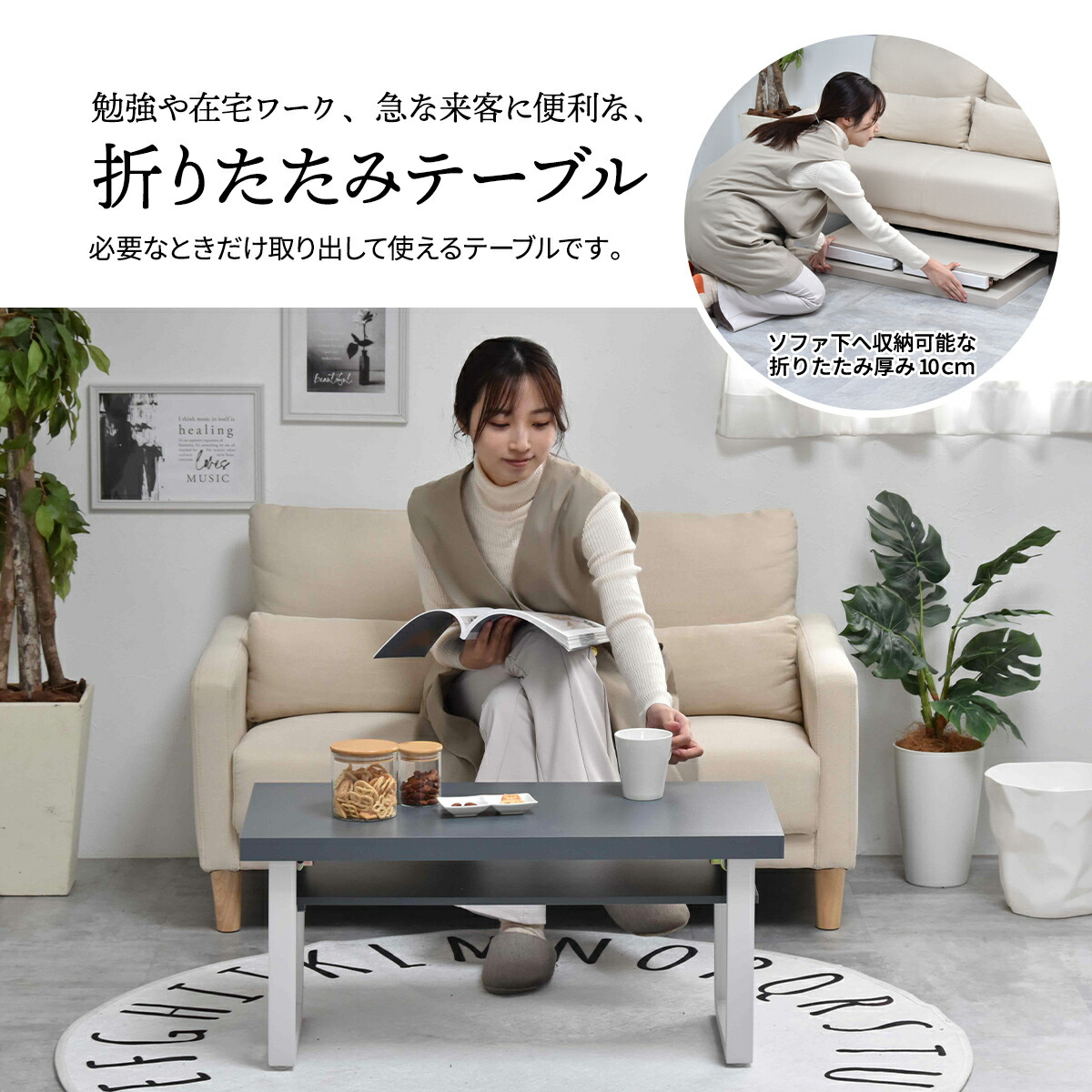 勉強や在宅ワーク・急な来客にも便利な折れ脚センターテーブル