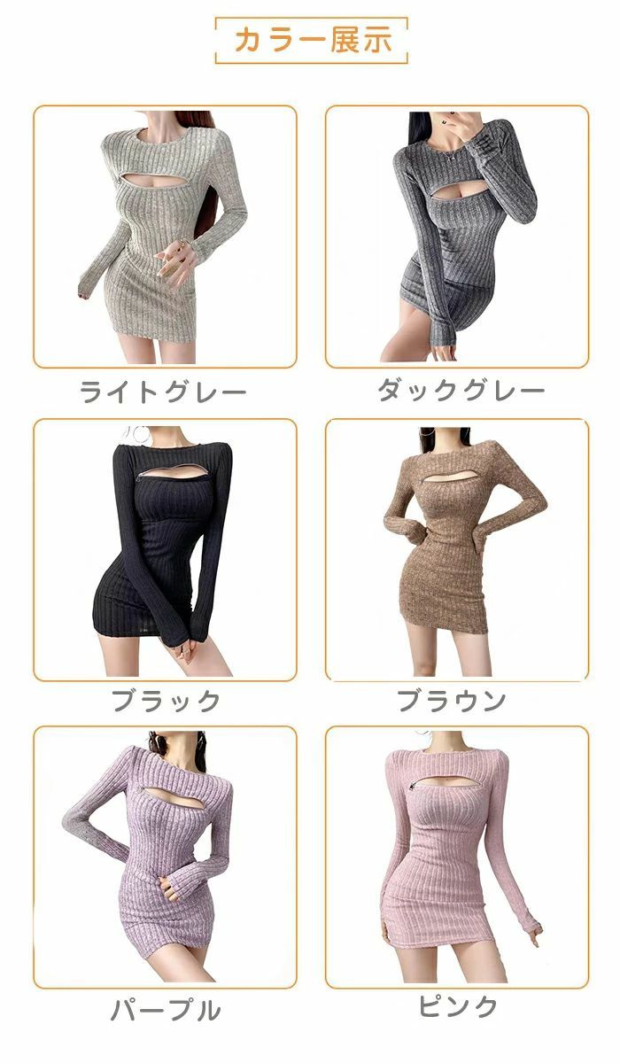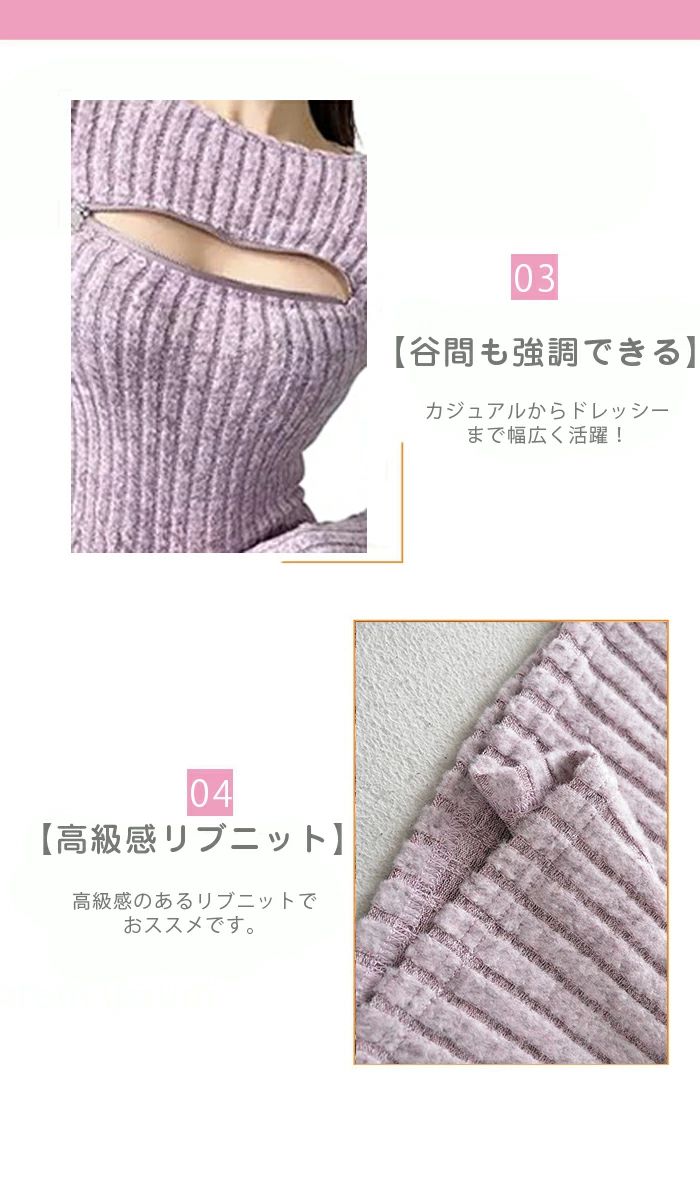 胸開き 胸あき セクシー リブ ニット スポーツ アウトドア 早い者勝ち ライトグレー ダックグレー ブラック ブラウン パープル ピンク S M L