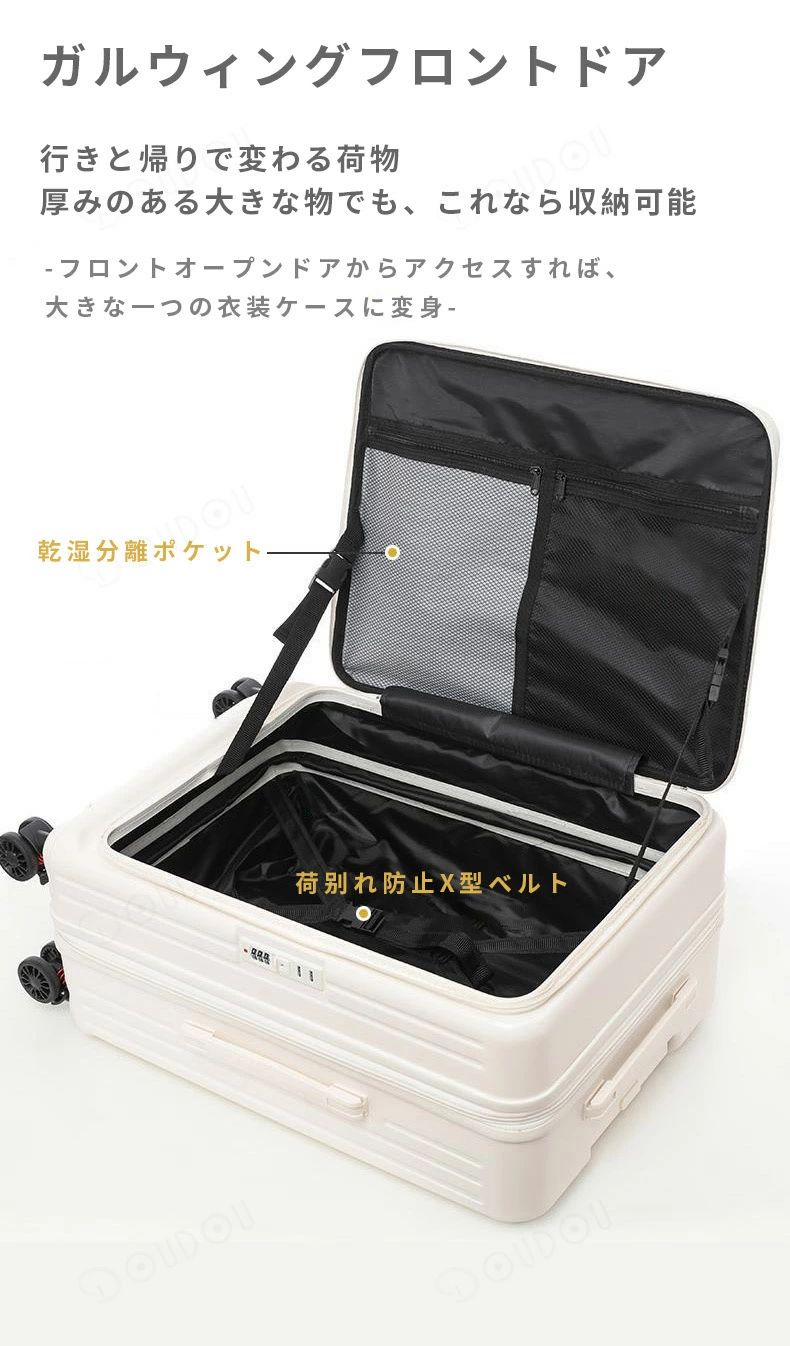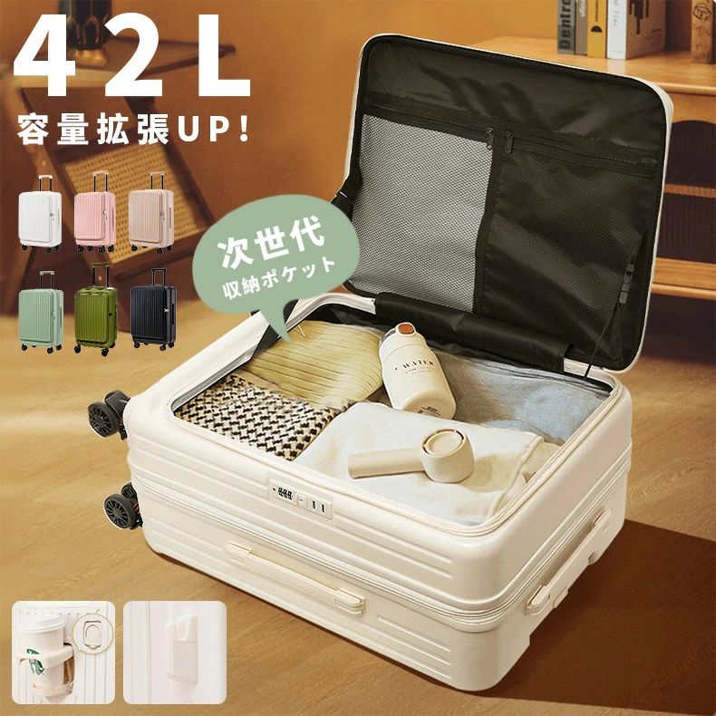 スーツケース キャリーケース 片開き ハード 拡張機能付き フロントオープン 大容量 超軽量 ファスナータイプ カップホル 機内持ち込み