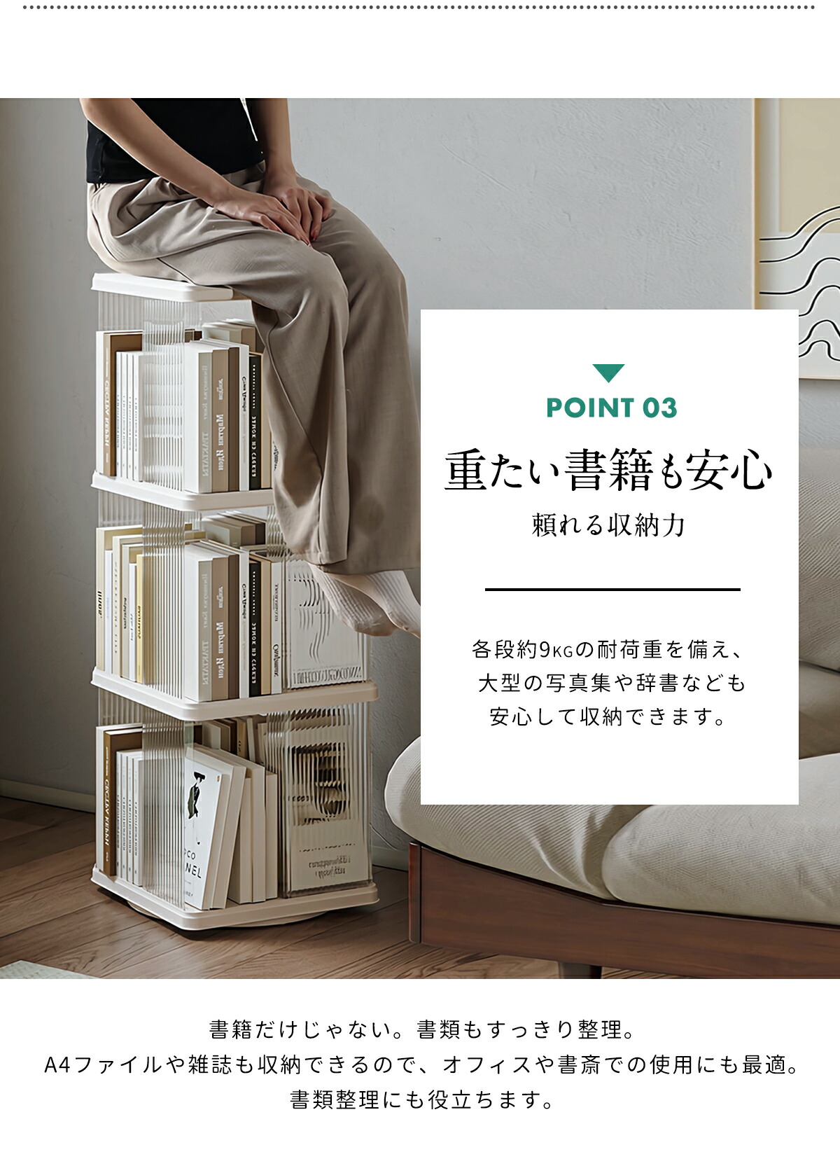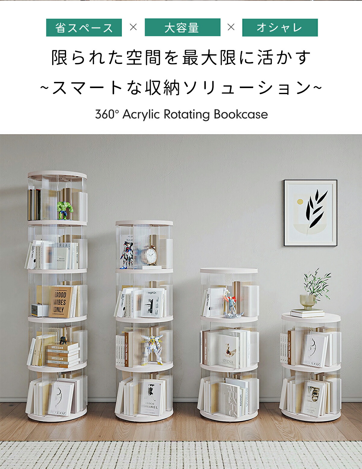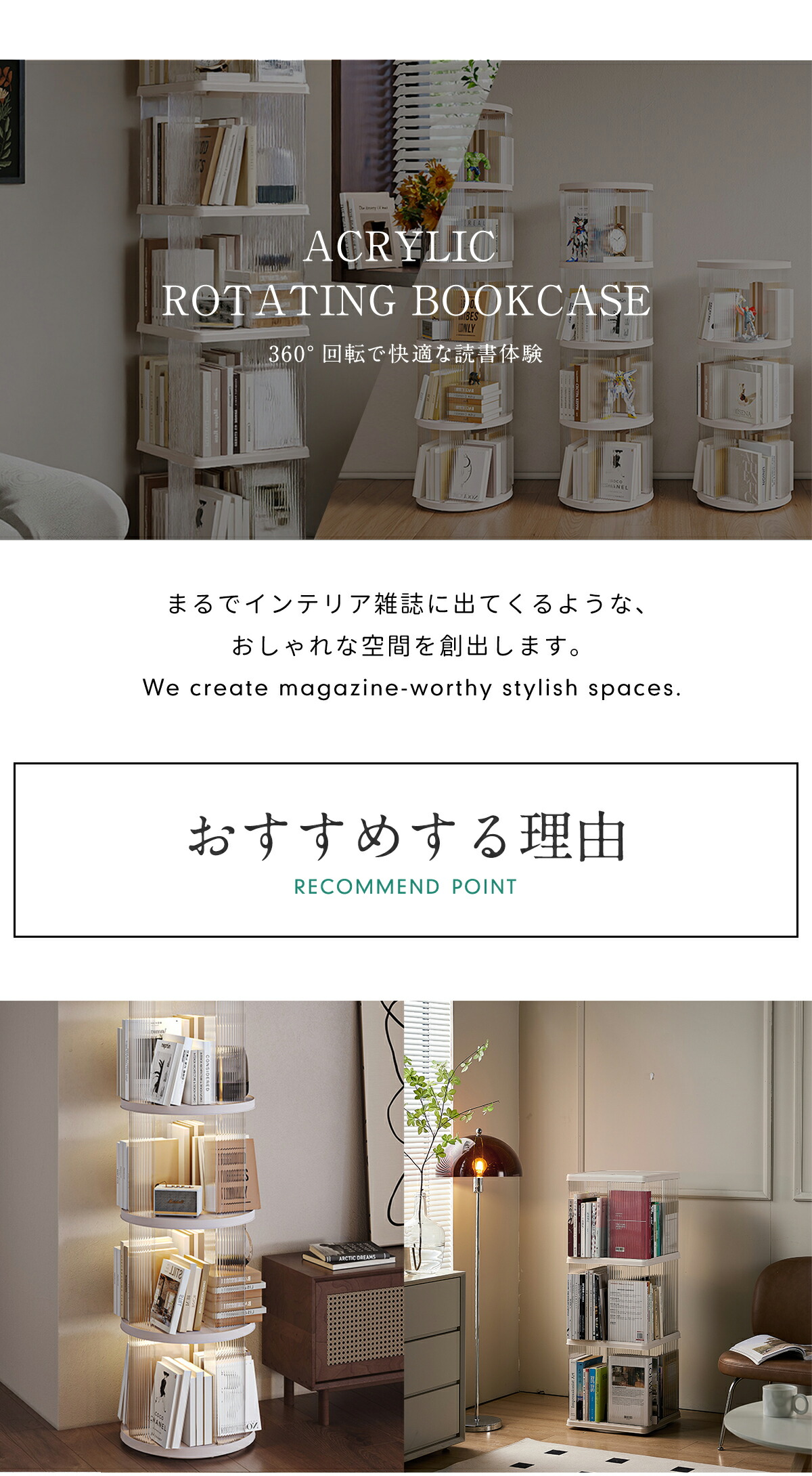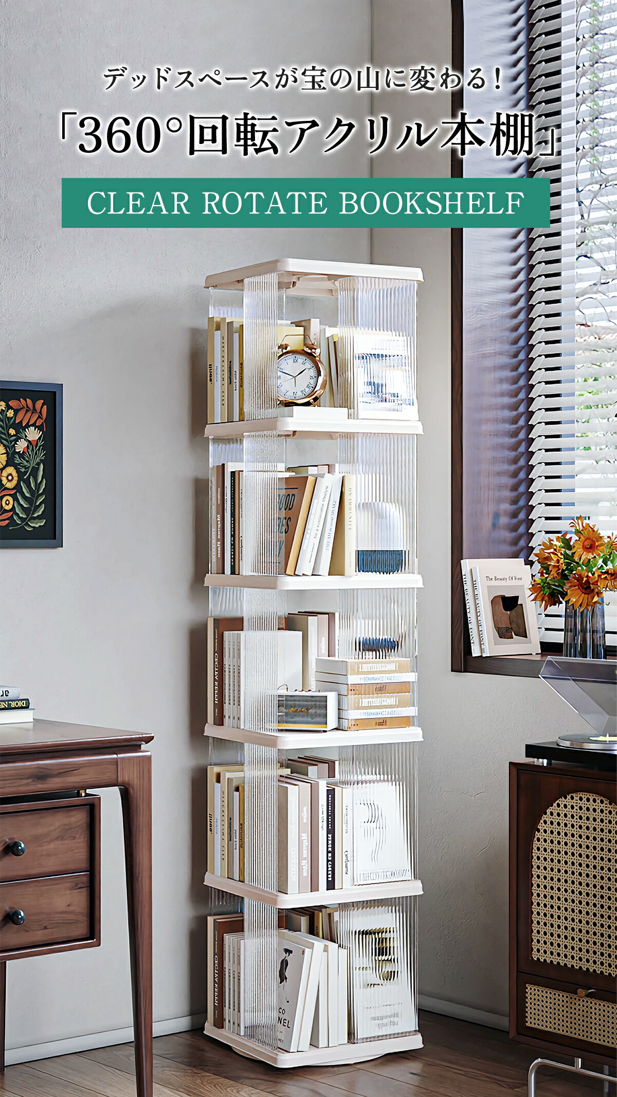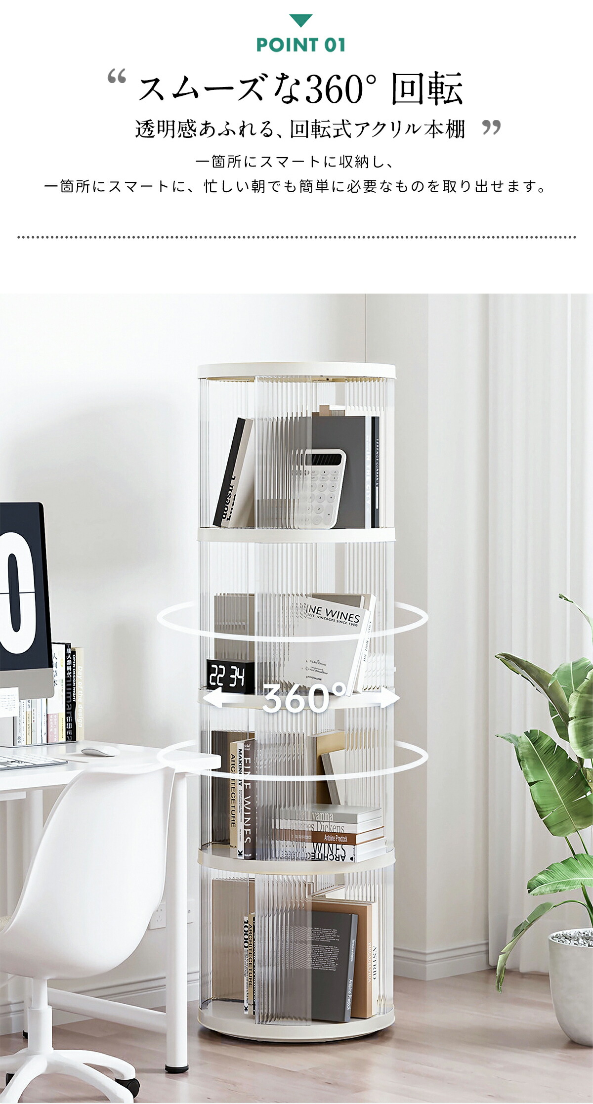 360°回転アクリル本棚