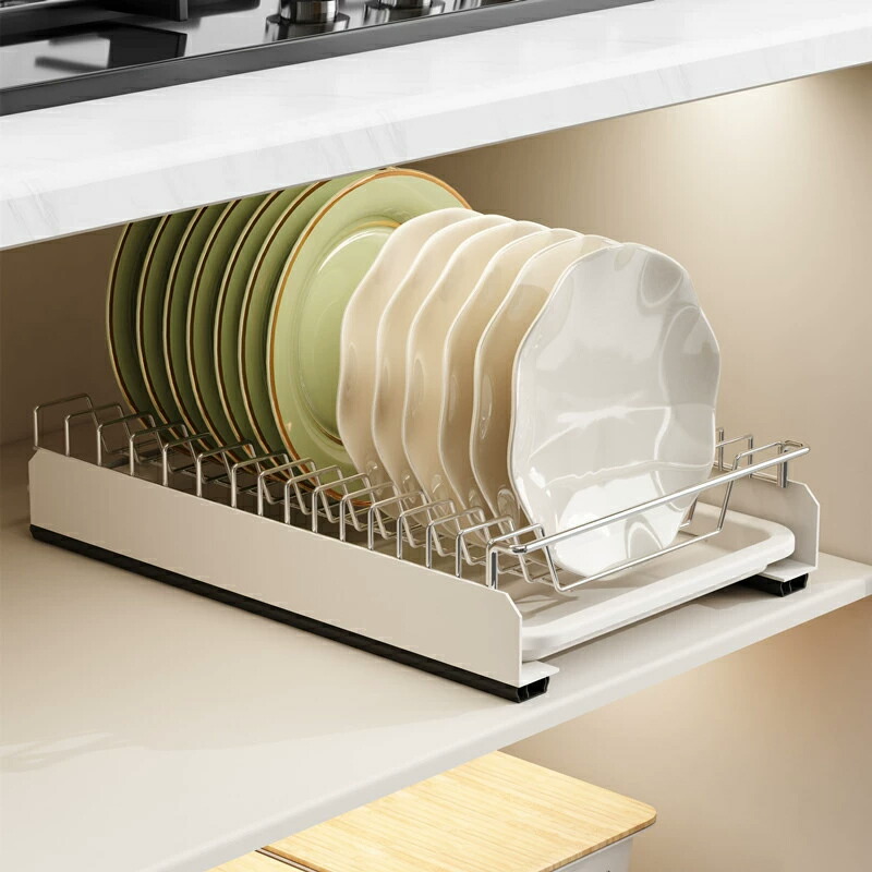 スライド式 ディッシュスタンド 食器スタンド 穴開け不要 取外し可能 立てて収納 食器収納 キッチン収納 皿立て 収納 組み合わせ 引き出し式 ディッシュ スタンド 水切 ボウル