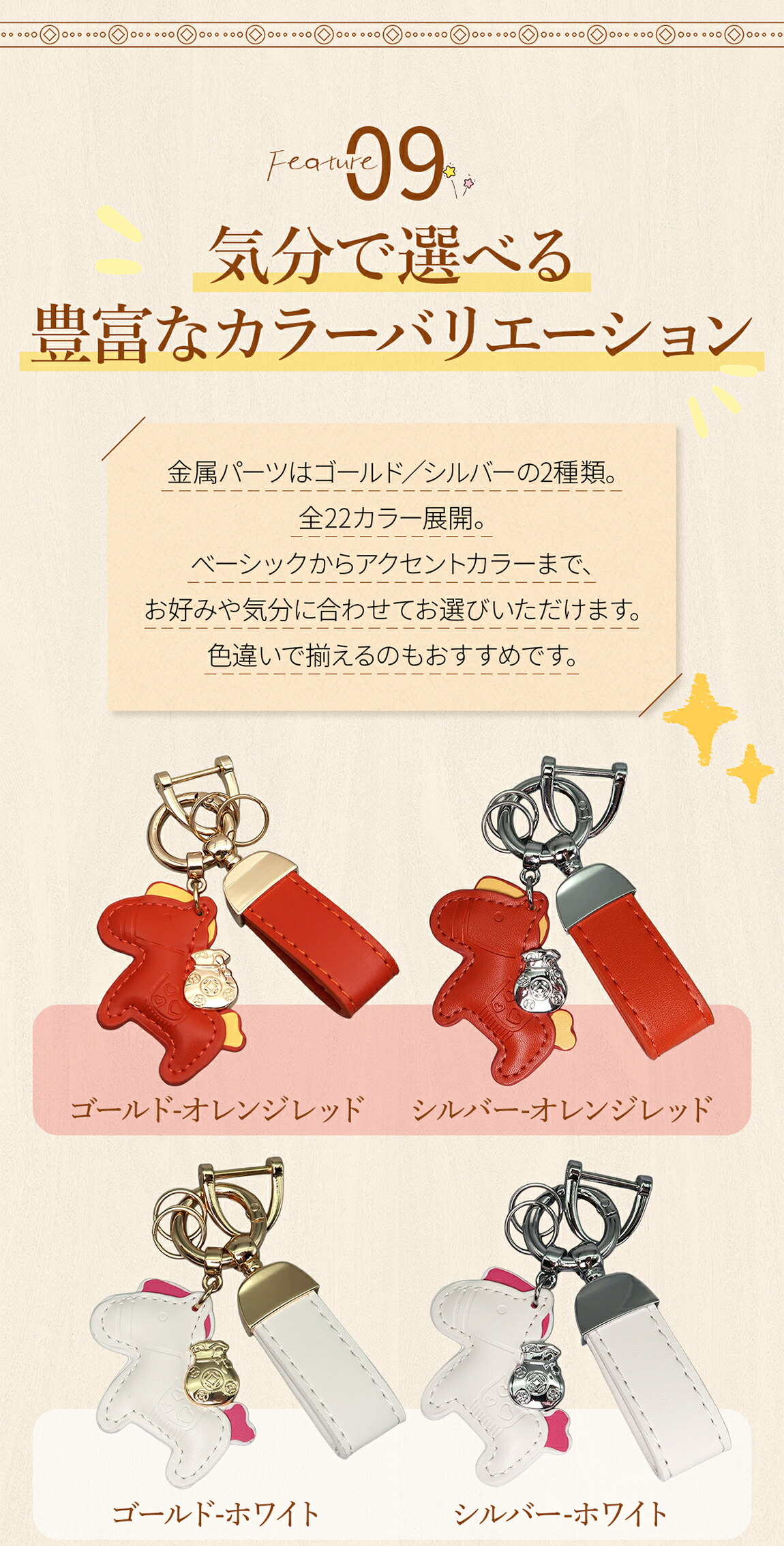 選ぶ楽しさが広がる22カラーバリエーションで、自分用はもちろん、誕生日や新年のお守りギフトとしても喜ばれます。