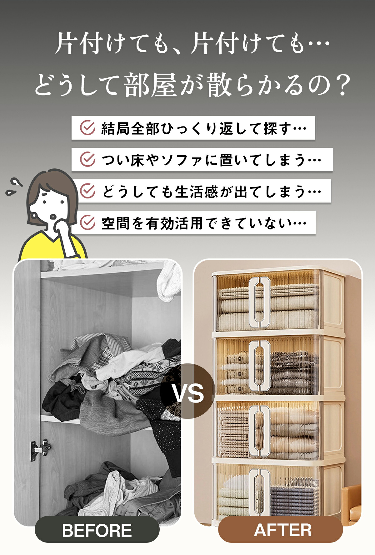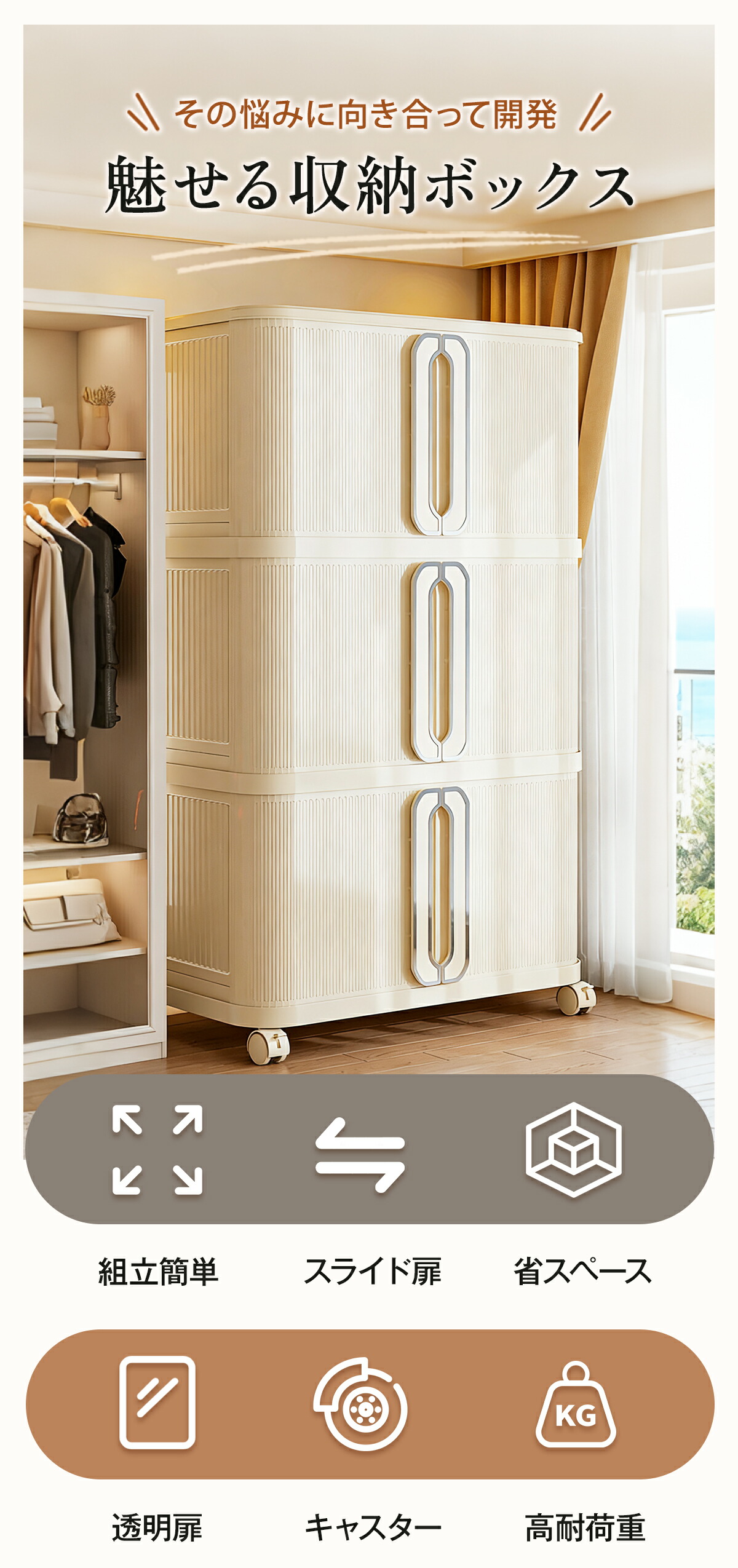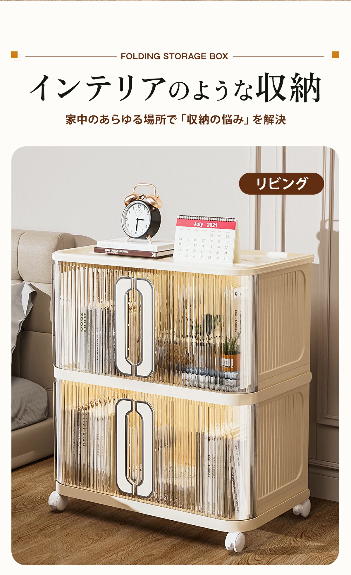 収納ボックス 収納ケース キャビネット コンテナ 折りたたみ 折り畳み スタッキング 積み重ね 衣装ケース 衣類収納 おもちゃ箱 蓋付き フタ付き 前開き 扉付き 横開き 観音開き スライドドア キャスター付き 大容量 50L おしゃれ 白 ホワイト クリア 透明 ブラウン 北欧 シンプル モダン キッチン リビング 洗面所 クローゼット パントリー 隙間収納 2段 3段 4段 5段 プラスチック 組み立て簡単