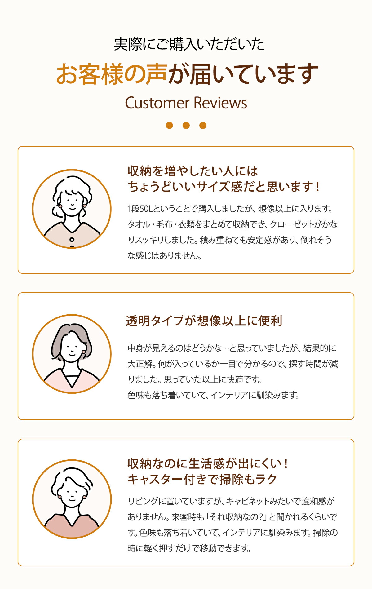 選べるカラーは、中身を隠してスッキリ見せる「ホワイト」と、中身が一目でわかる「透明タイプ」の全3色。ライフスタイルに合わせて自由にお選びいただけます。