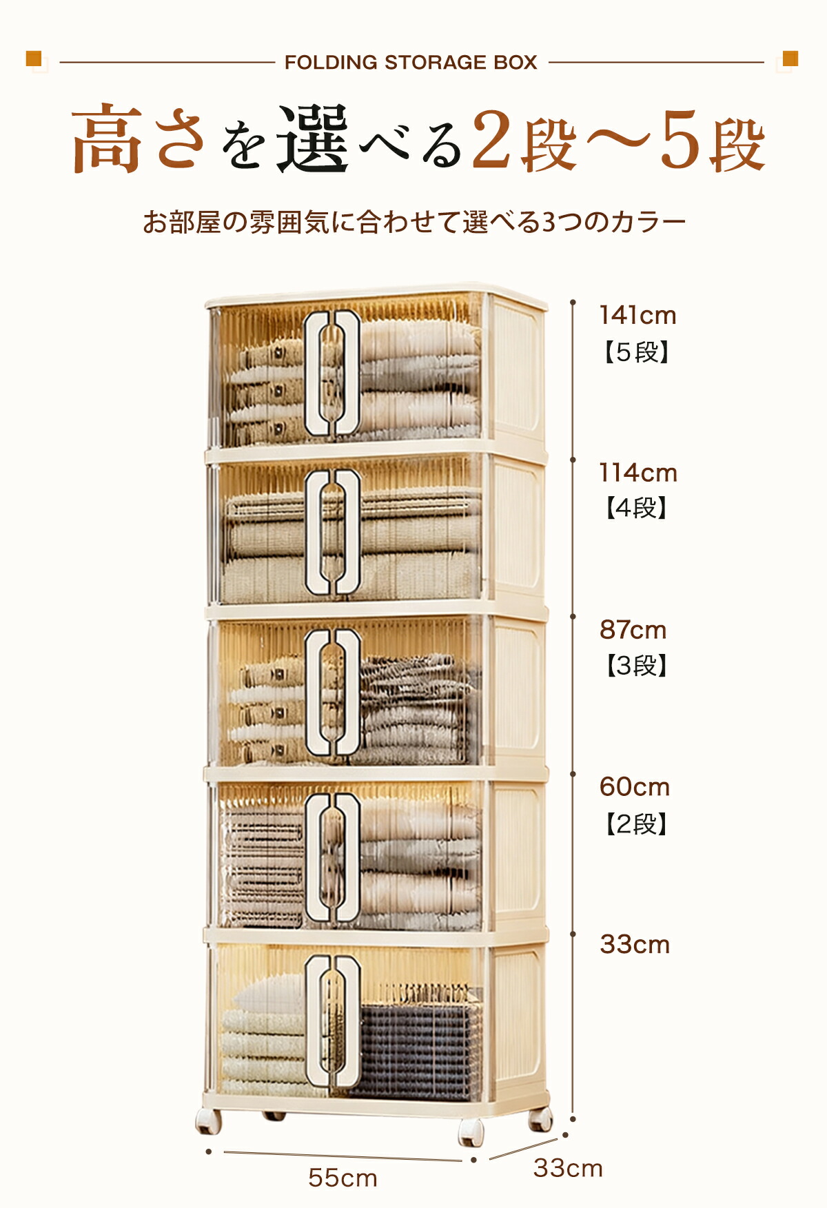 [高さ] 2段:約60cm / 3段:約87cm / 4段:約114cm / 5段:約141cm