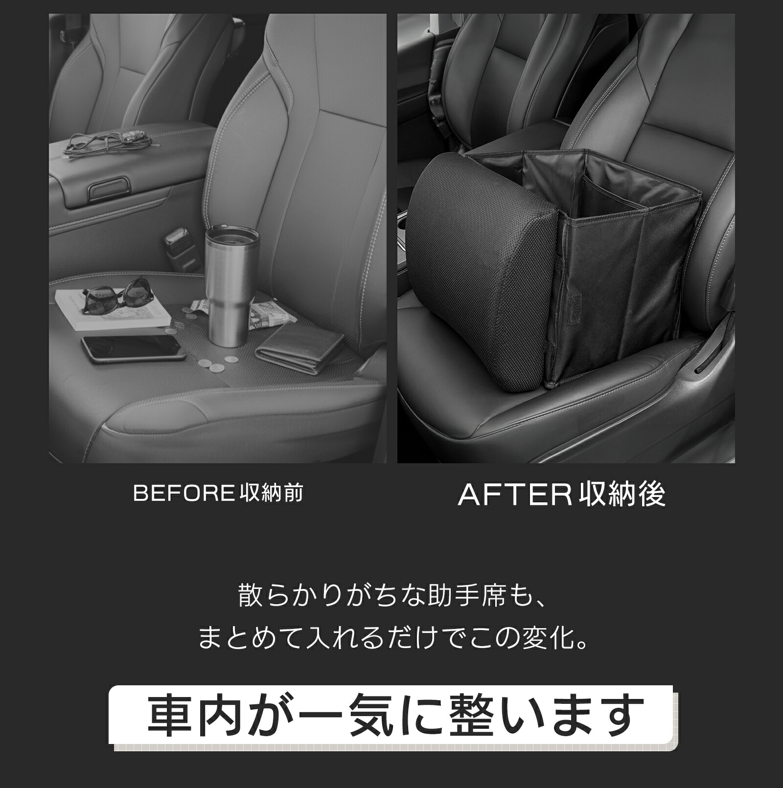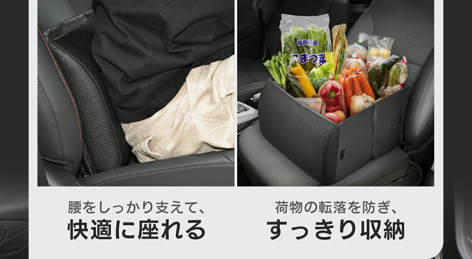 助手席の荷物置きとして使え、散らかりがちな車内をすっきり整理整頓できます。