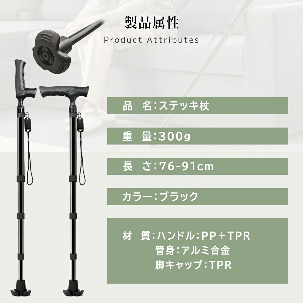 ステッキ 杖 軽量 つえ 3点杖 自立 1本 2本