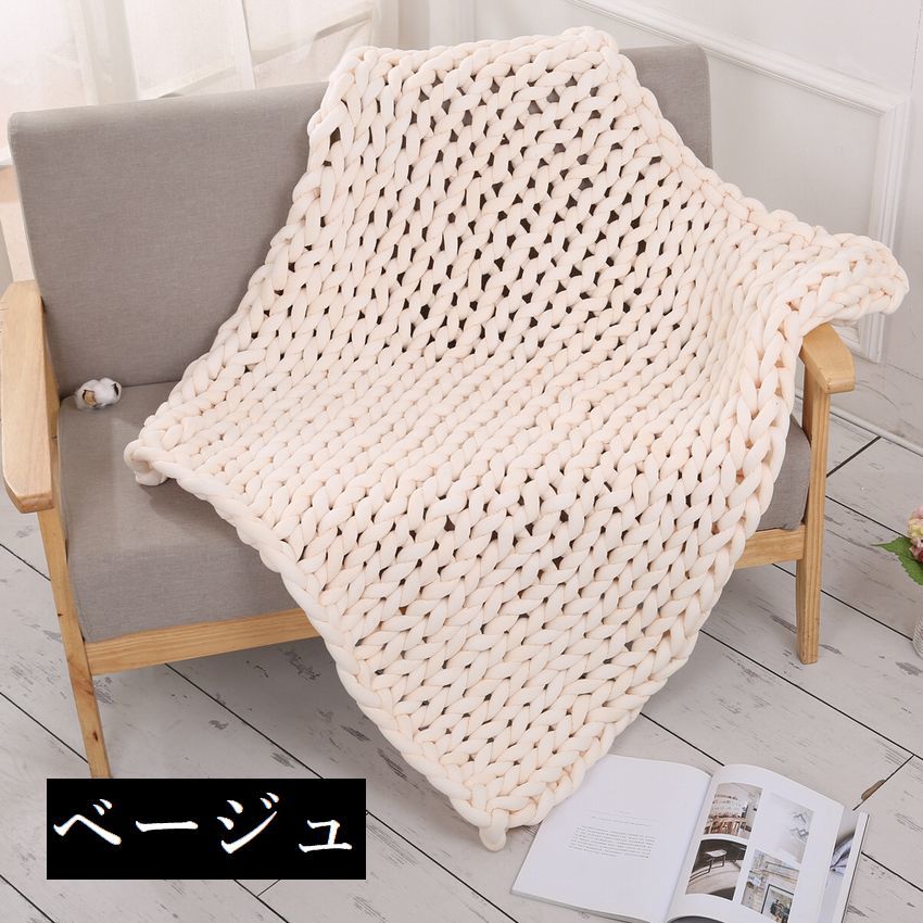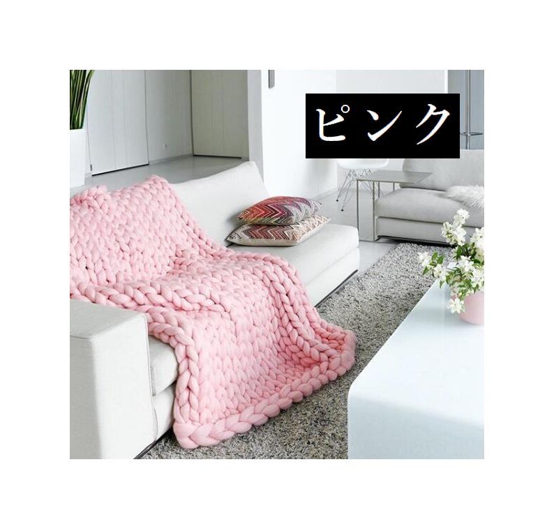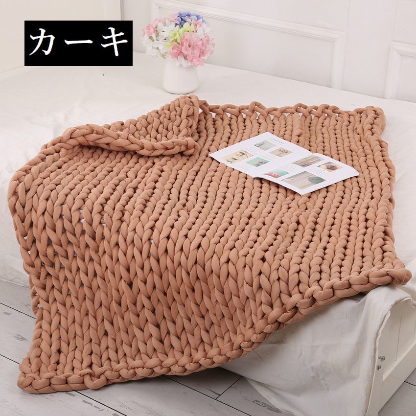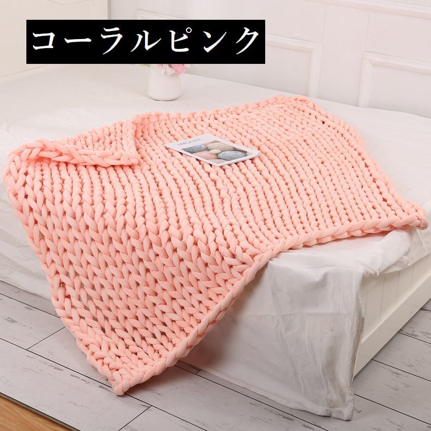 ブランケット チャンキーニットブランケ ピンク グレー コーラルピンク レイクブルー カーキ ベージュ ブルー 60×60 80×60 100×80 120×100
