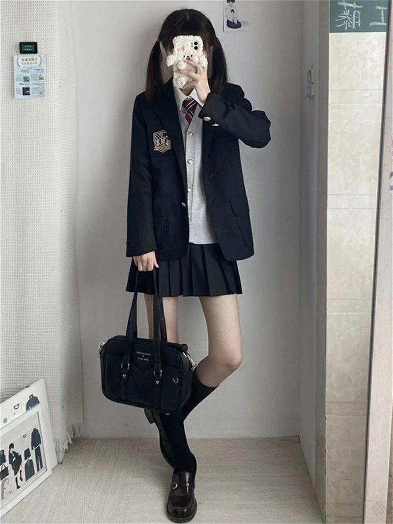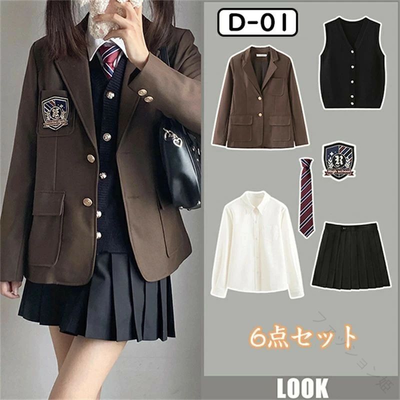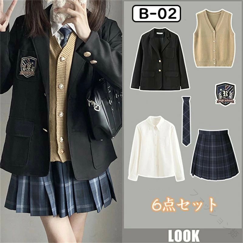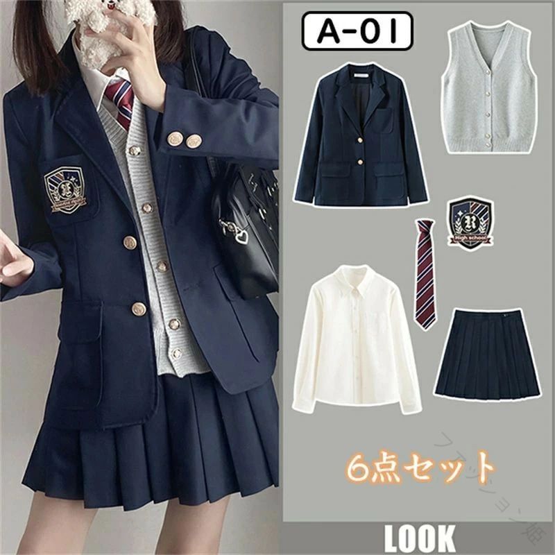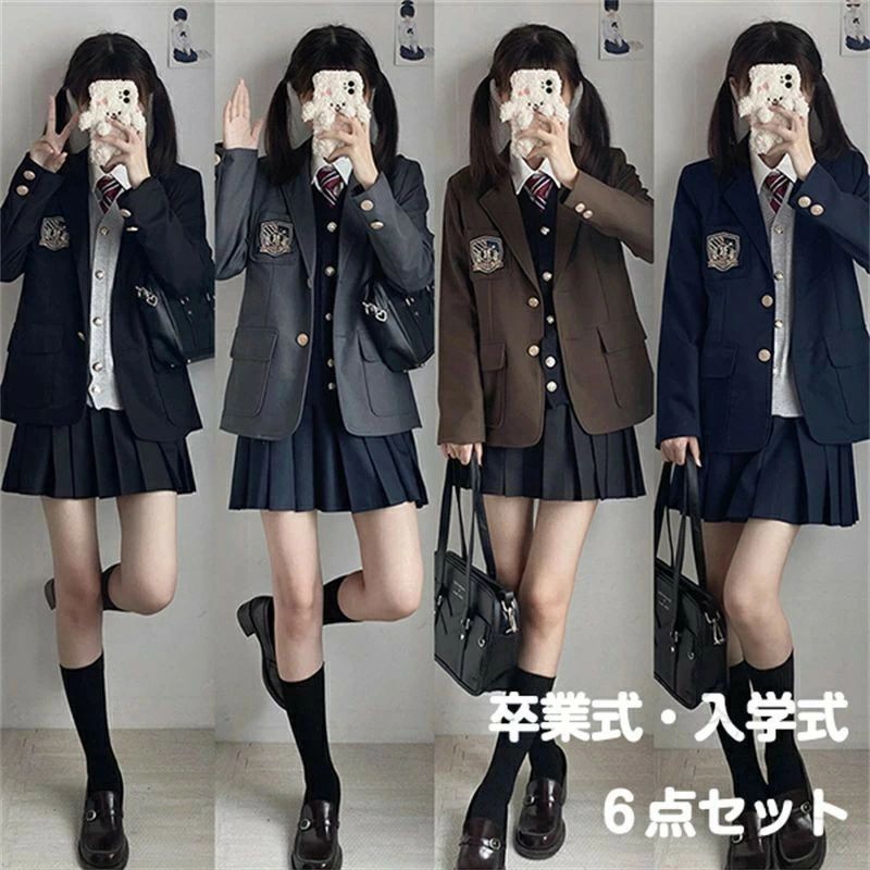 6点セット 女の子用フォーマルスーツ 入学式 卒業式 制服 ブレザー ネクタイ付き 小学生 中学生 ジュニアスーツ 学校行事対応 子供スーツ 高校生