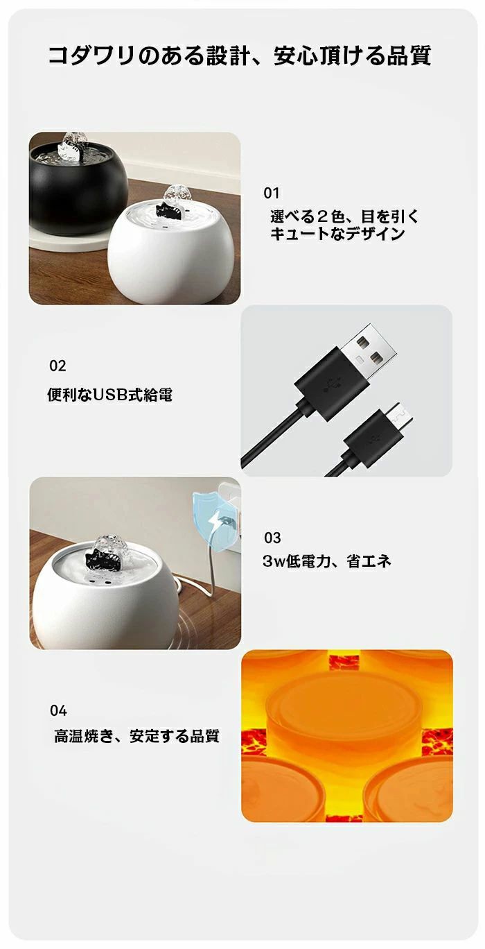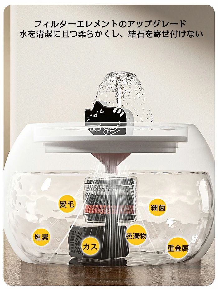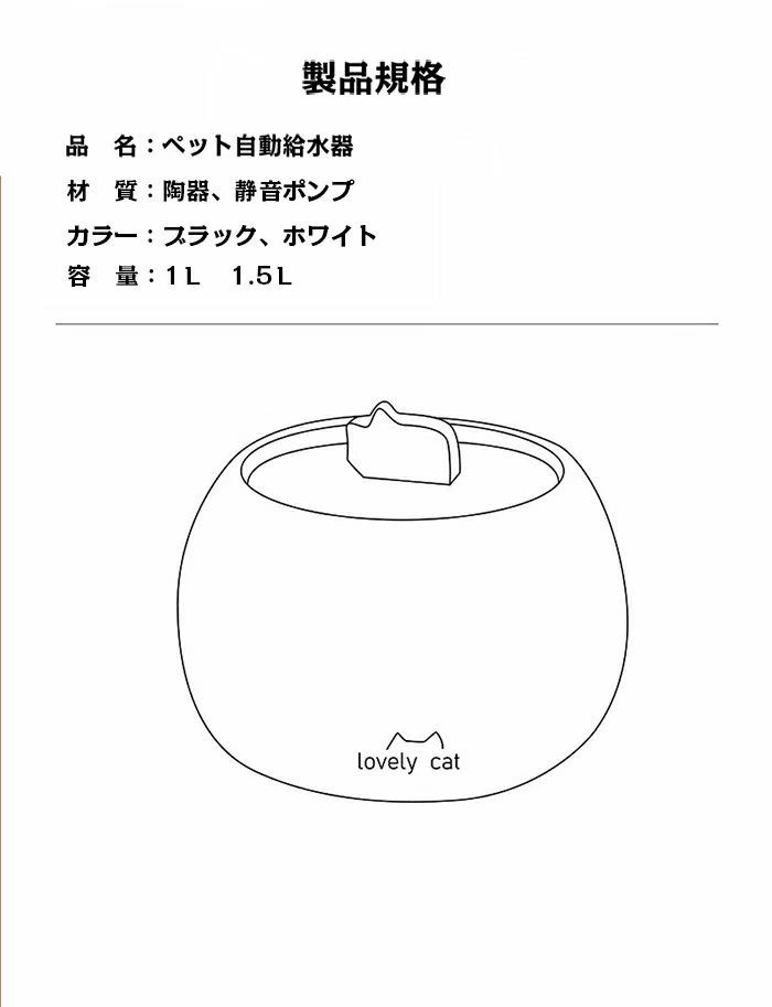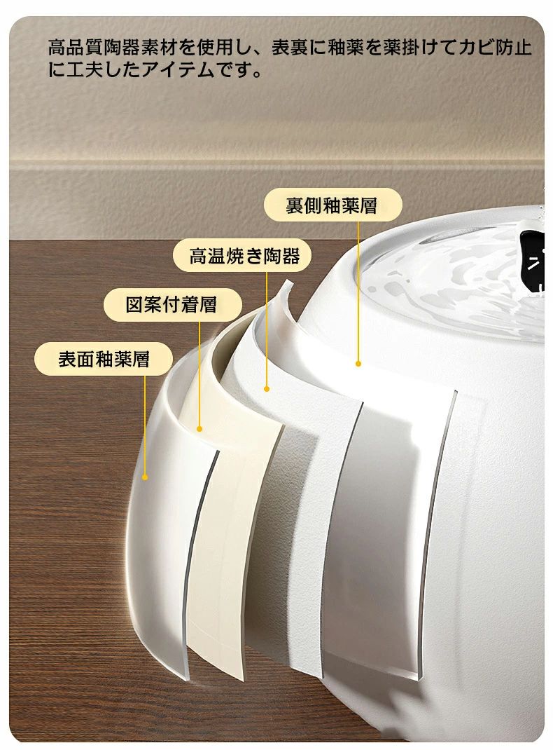 自動給水器 水飲み器 水飲み 陶器皿 猫 給水器 水分補給 水入れ 自動水やり器 自動水やり機 浄水 超静音 活性炭フィルター 猫自動給水器