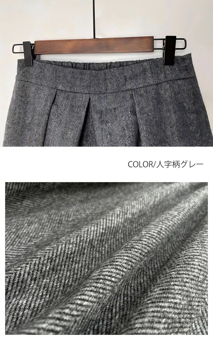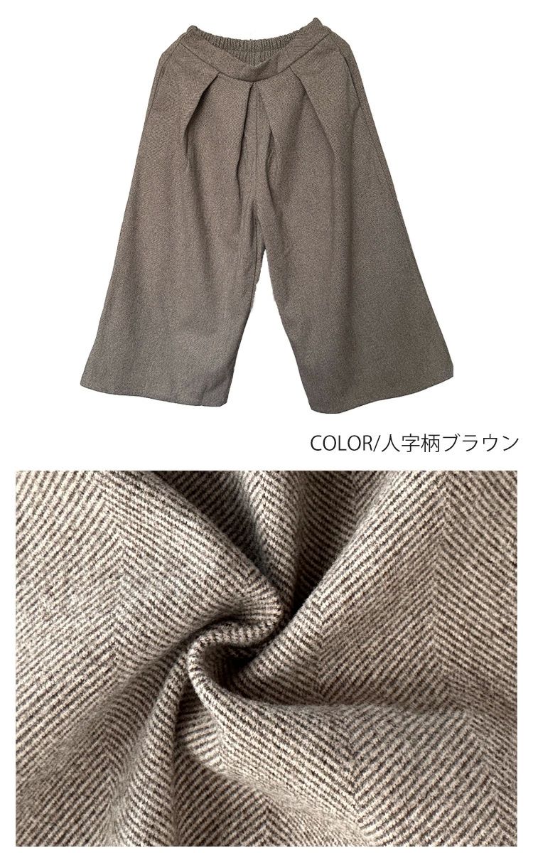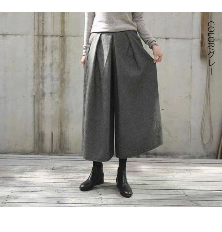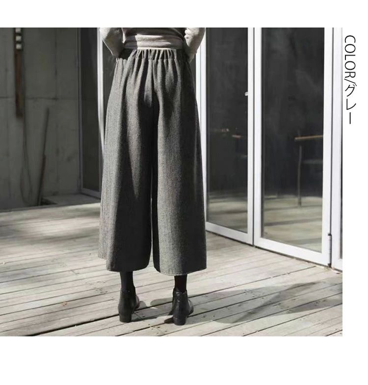 ワイドパンツ 秋冬 ウール調 ガウチョ レディースファッション 新作 ブラック グレー 人字柄グレー 人字柄ブラウン M L XL 高身長向き丈85cm!NEW
