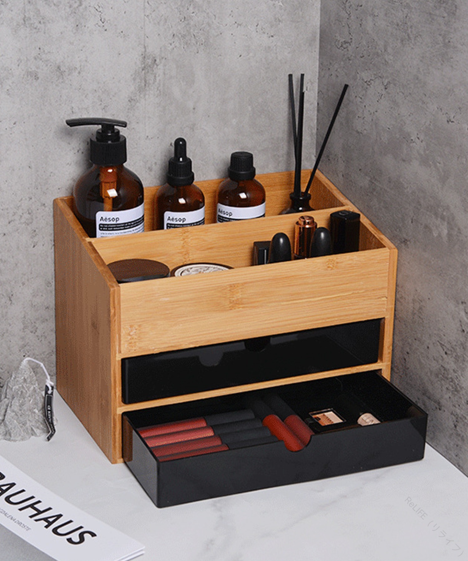 メイクボックス 収納ボックス 木製コス ホワイト ブラック