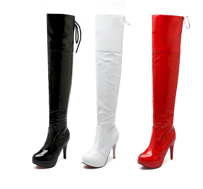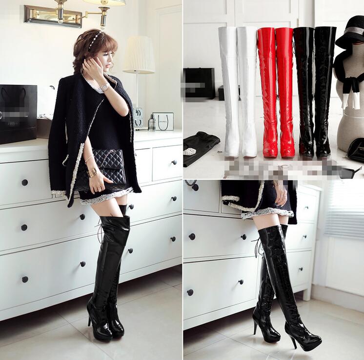レディースブーツニーハイブーツエナメル 靴 通販 22cm 22.5cm 23cm 23.5cm 24cm 24.5cm 25cm 25.5cm 26cm 26.5cm ホワイト ブラック レッド