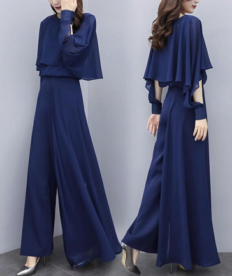 パンツドレス 結婚式 セットアップ 袖 スーツ セットアップ パンツスーツ 特集 ネイビー ブラック S M L XL 2XL 3XL