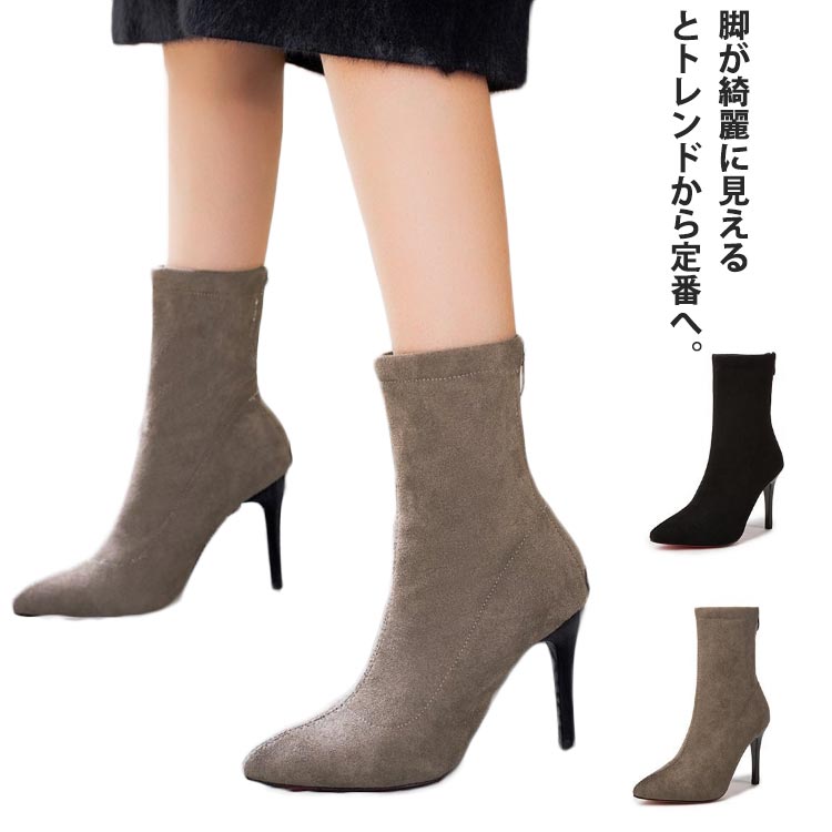 ショートブーツ ピンヒール レッドソール シューズ レディース ショート丈 長め トレンド 滑り止め 秋冬用 ブーツ 痛くない 疲れない おしゃれ 韓国ファッション ポインテッドトゥ 着痩せ かわいい