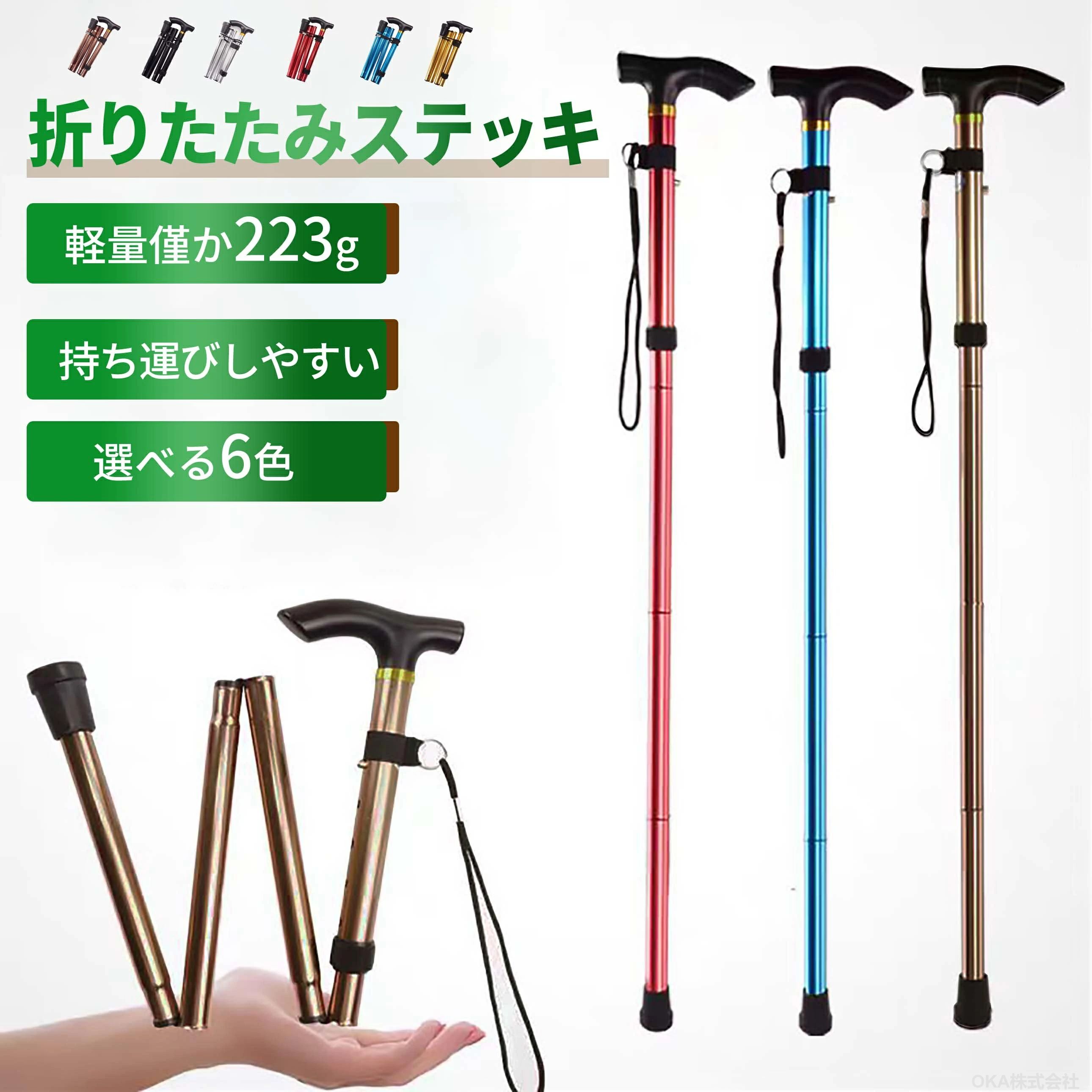杖 折りたたみ 折り畳み杖 軽量 超 モカ ブラック シルバー レッド ゴールド ブルー