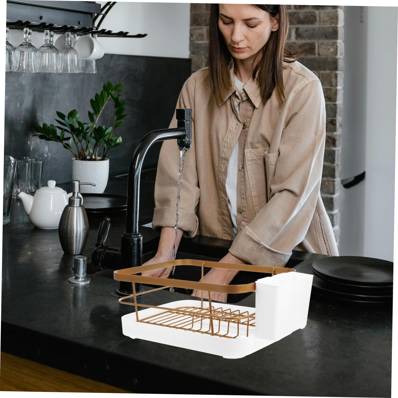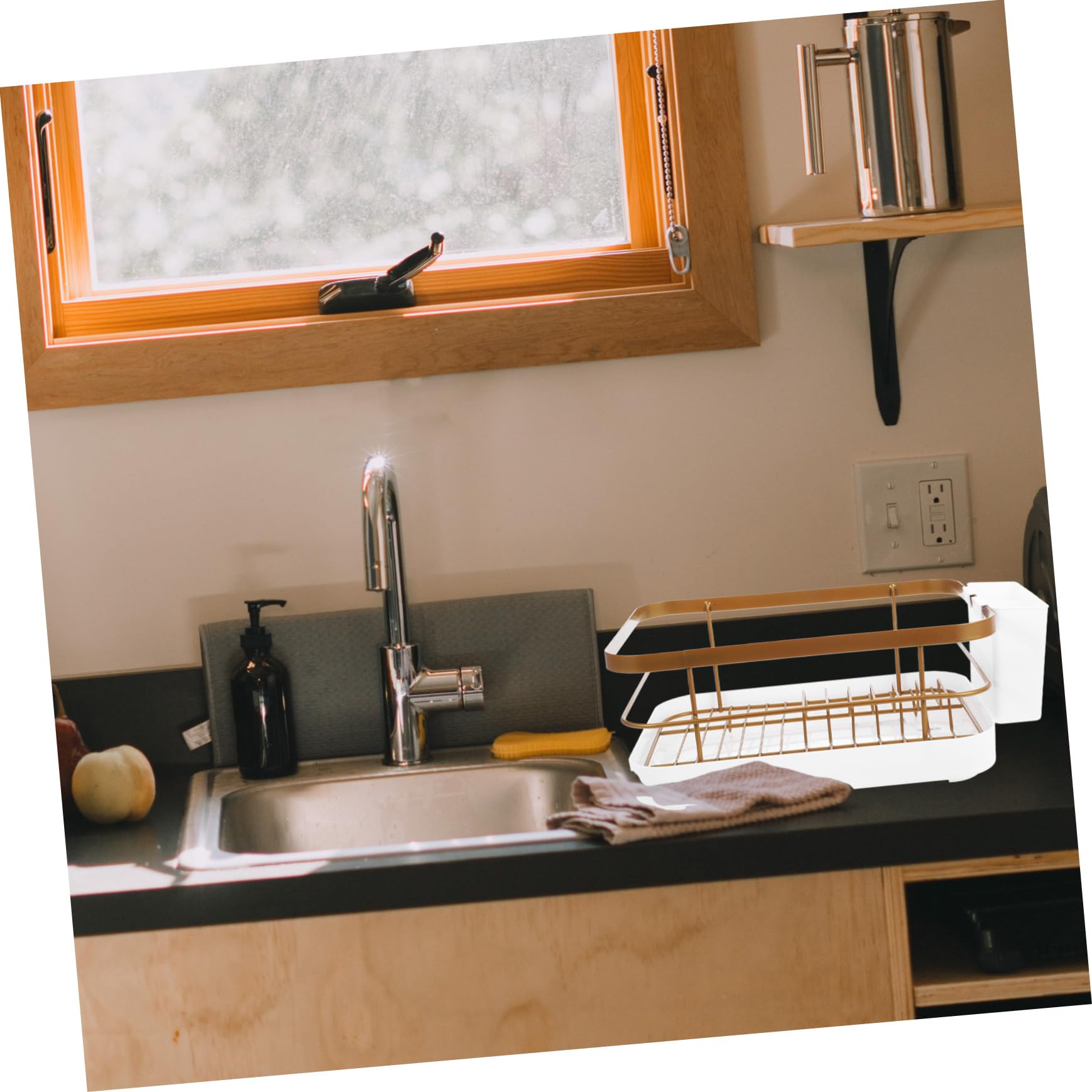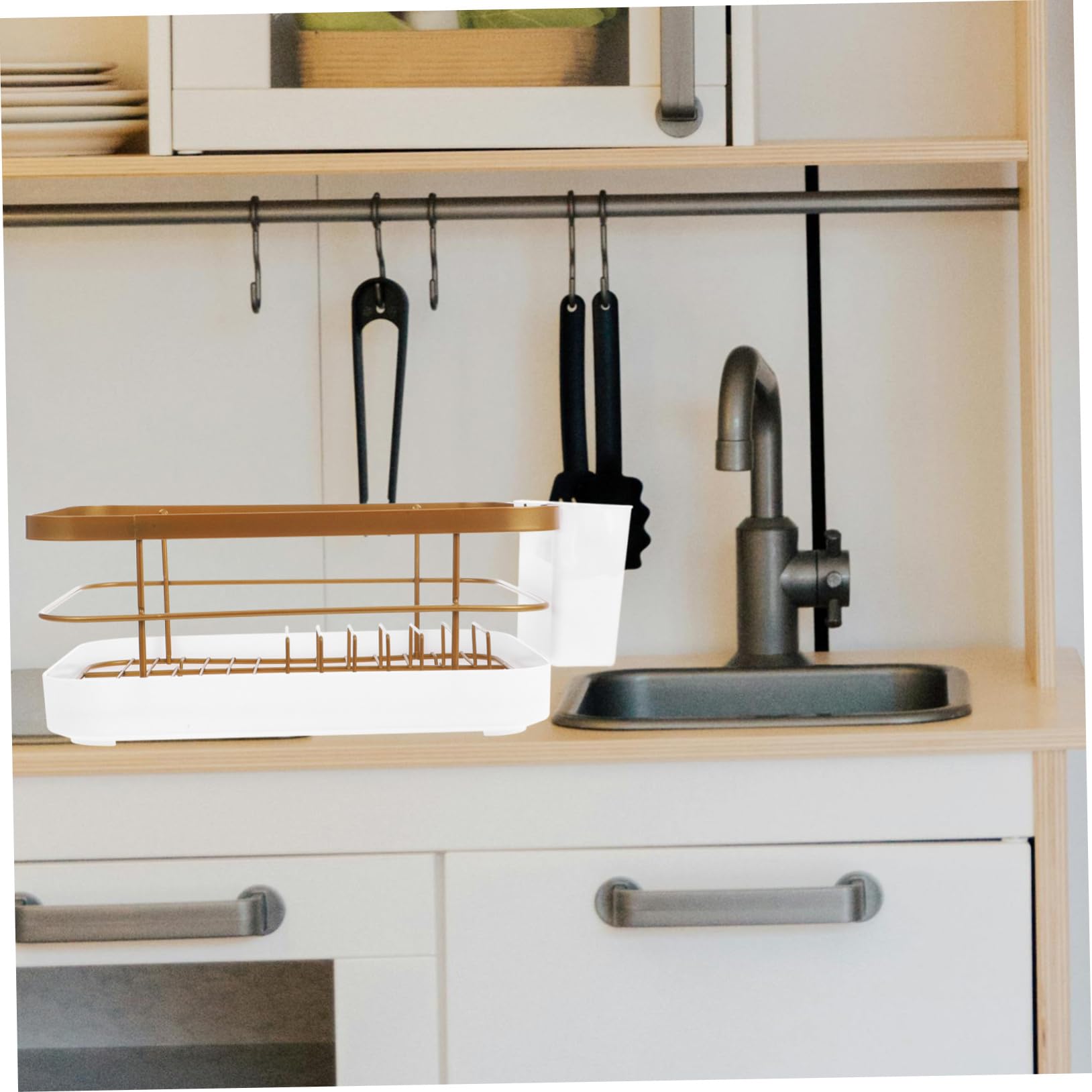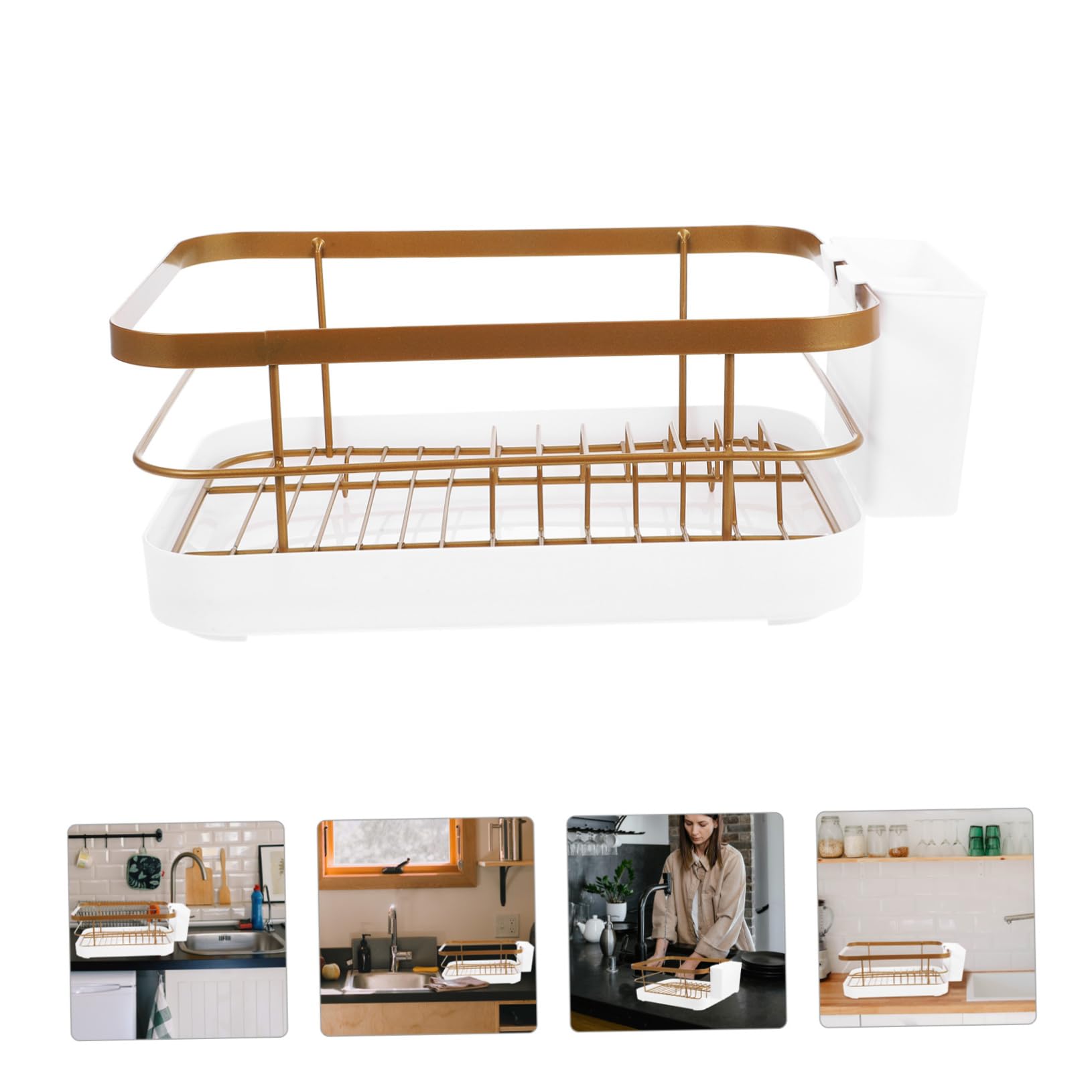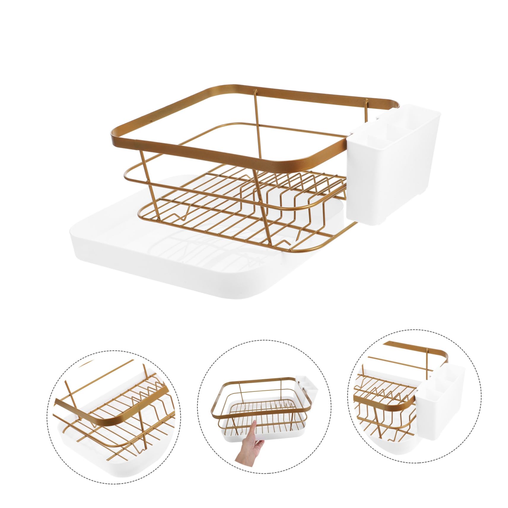 1セットキッチン用食器乾燥ラック 大容 ゴールデン 白