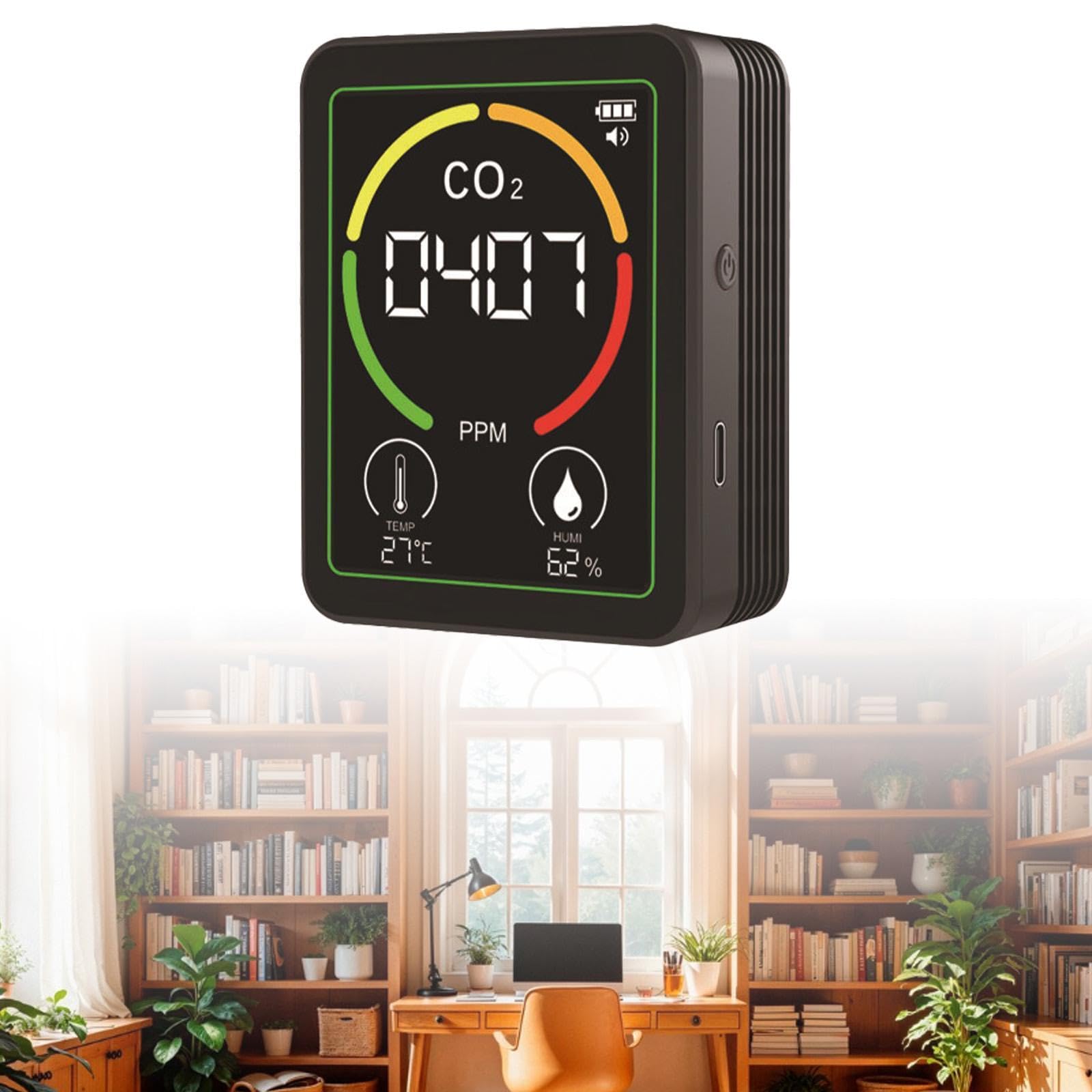 空気質モニター 空気分析装置 ポータブル湿度計 リアルタイム表示 倉庫 学校 住宅 業務用, 白 オフィス