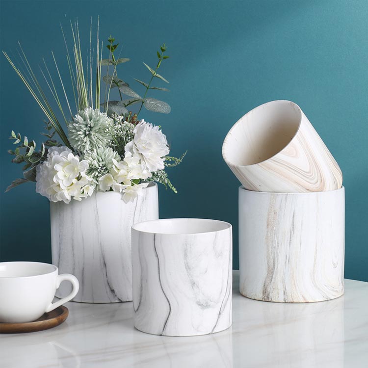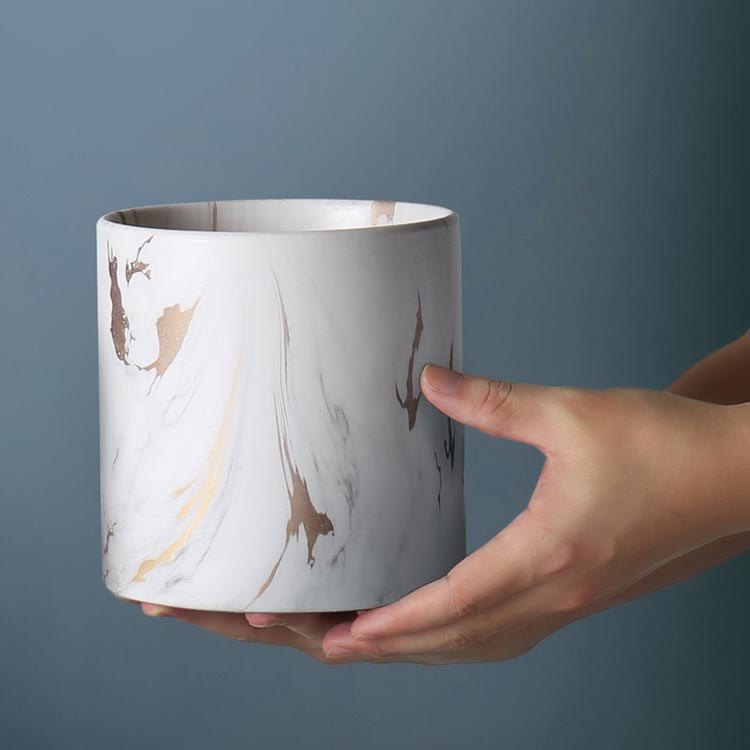 インテリア 大理石模様 陶器鉢 鉢植え 金(2個セット) 黒(2個セット) 黄(2個セット) 10cm 12cm 14cm