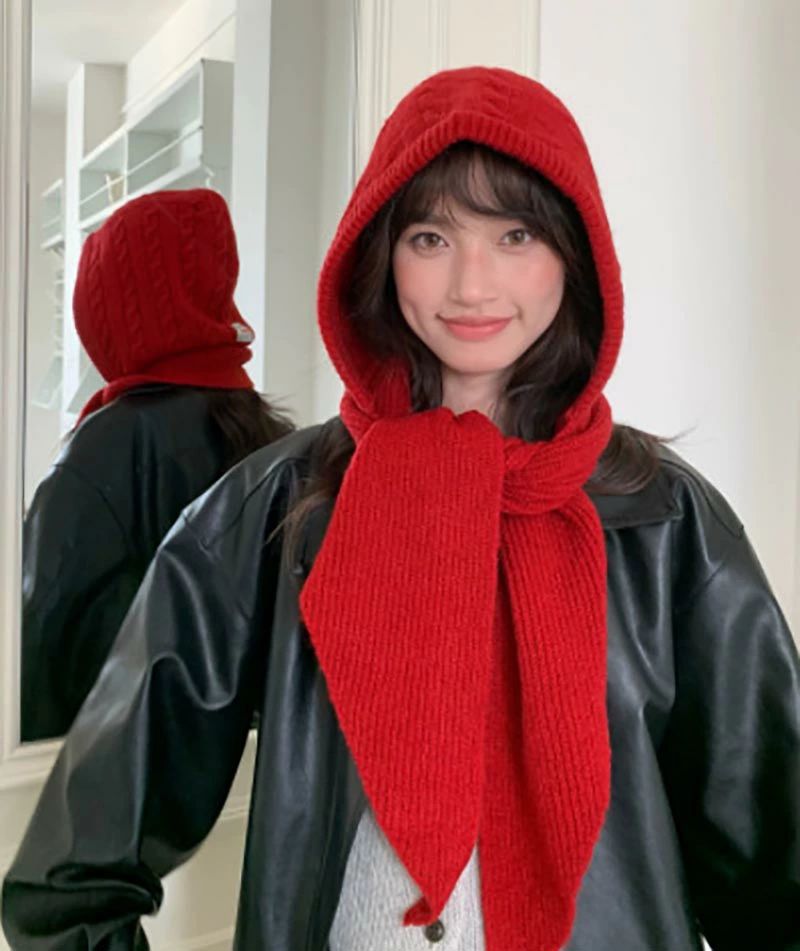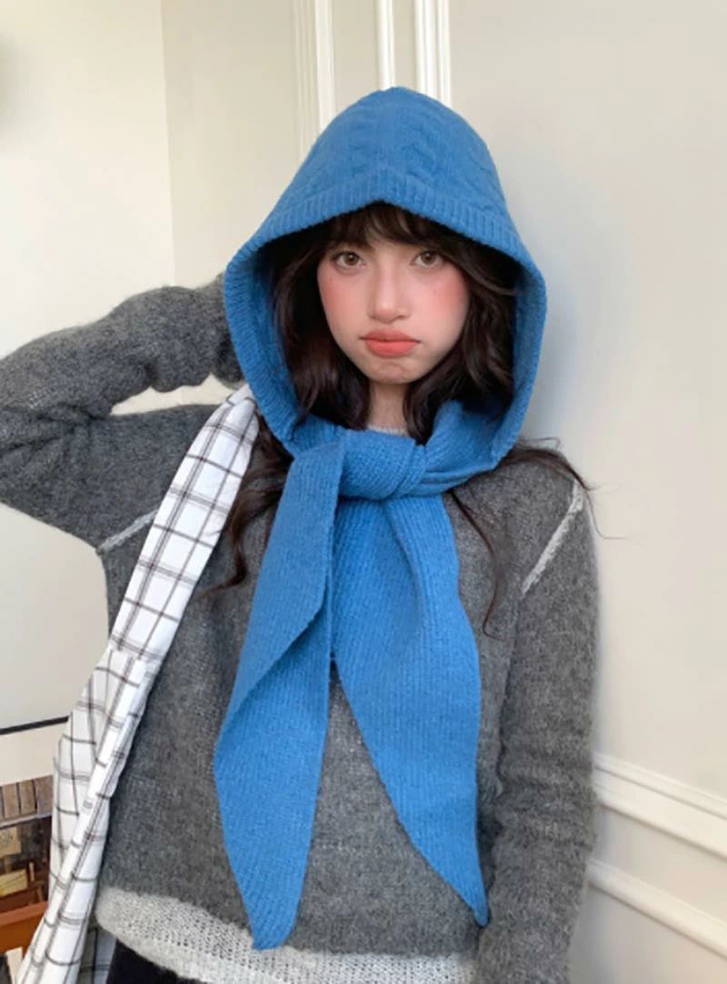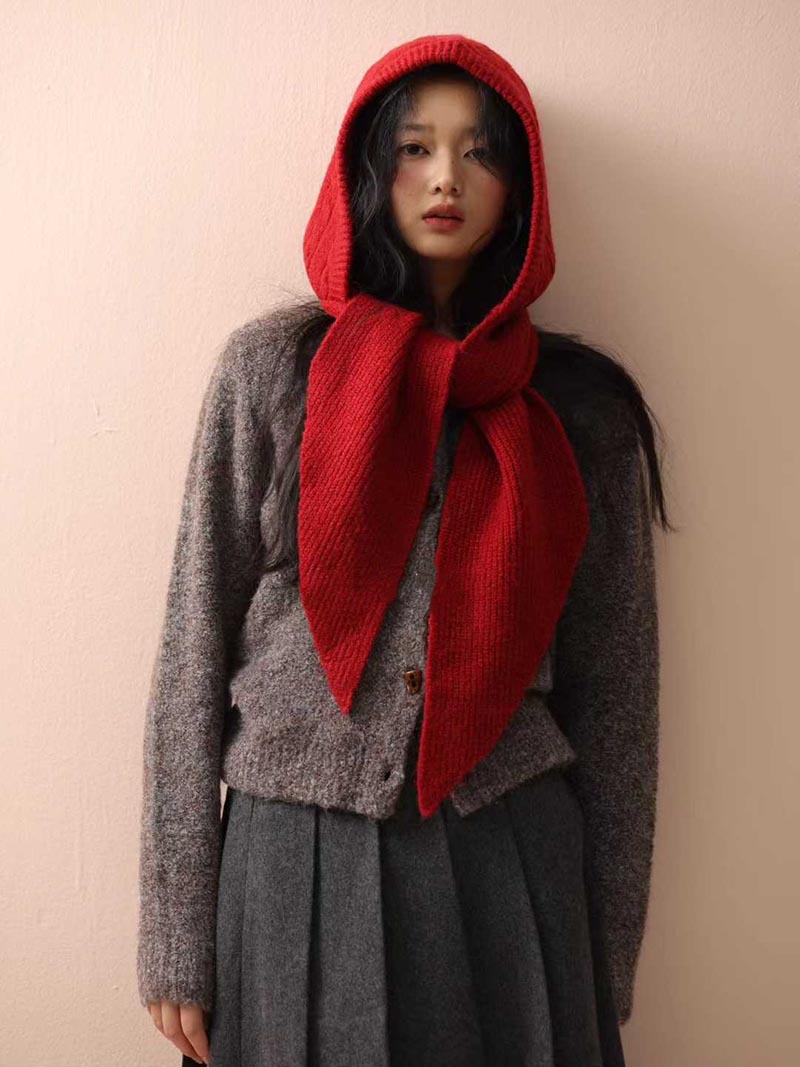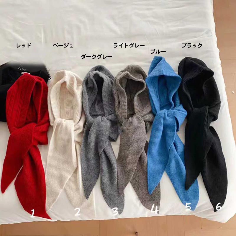 マフラー フード付き 帽子 上品 ニッ マフラー スカーフ レディースマフラー ストール 通販 1レッド 2ベージュ 3ダークグレー 4ライトグレー 5ブルー 6ブラック