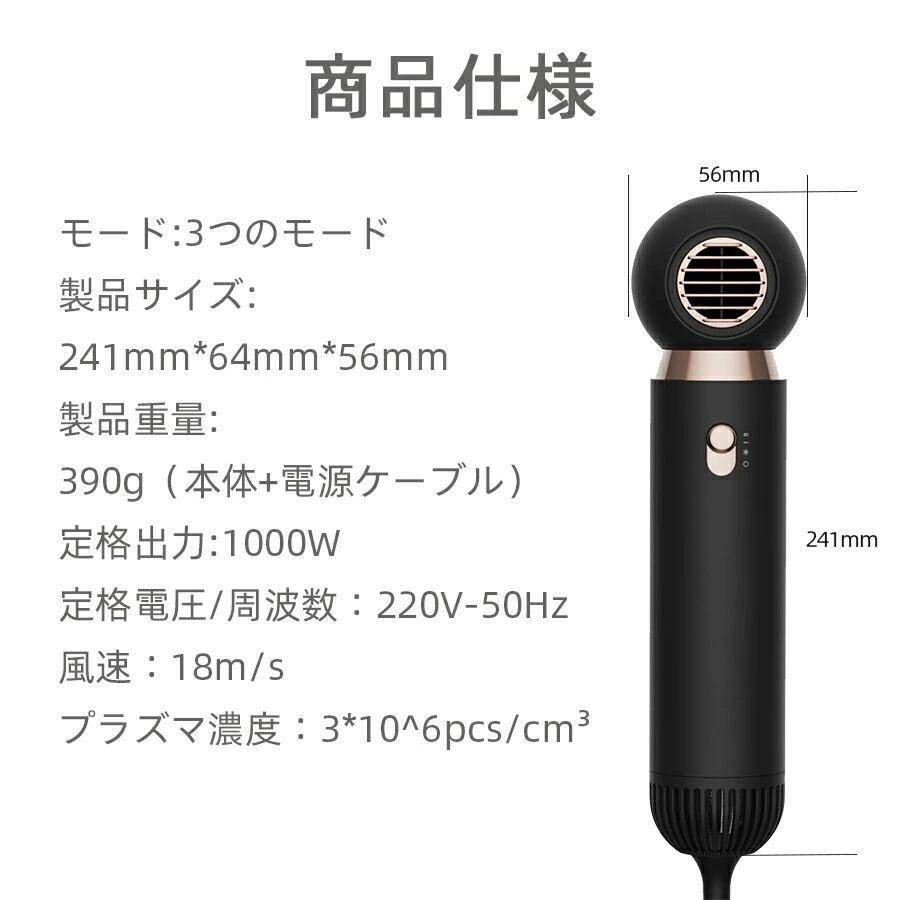 ドライヤー 大風量 速乾 高速風 3段 ブラック ピンク