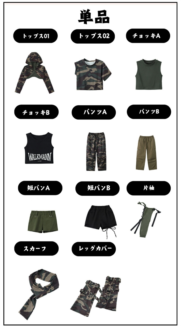 迷彩柄 ダンス衣装 キッズ 女の子 カ キッズ ベビー マタニティ 通販 110cm 120cm 130cm 140cm 150cm 160cm 170cm 180cm フリーサイズ 子供M(110cm-140cm) 大人L(150cm-180cm) 01-2点セット 01-3点セットB 02-2点セット 02-3点セット 03-2点セット 03-3点セット 04-2点セット 04-3点セット トップス01 トップス02 チョッキA チョッキB パンツA パンツB 短パンA 短パンB 片袖 スカーフ 黒ネクタイ 黒腕カバー 迷彩レッグカバー 迷彩手袋 レッグベルト カーキグリーン帽子 ウェストポーチ 黒ベルト