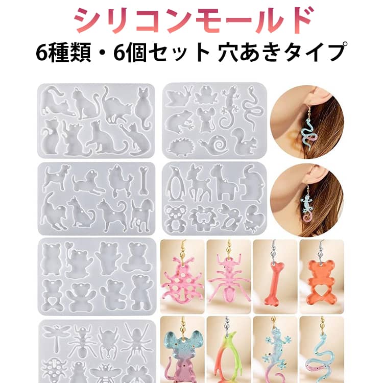 シリコンモールド 動物 6種類 穴あき 手芸 クラフト 生地 道具 キット レジンクラフト道具 モールド レジン型 早い者勝ち