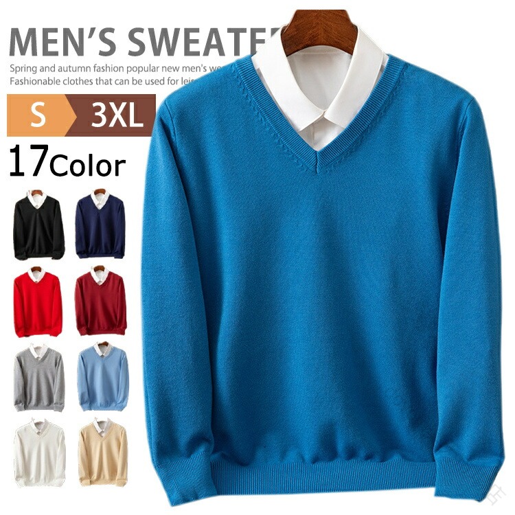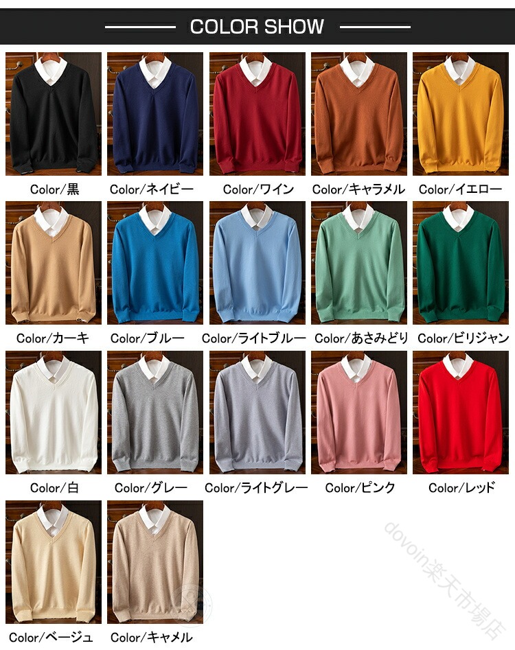 ニット メンズ セーター Vネック お トップス ニット セーター 豊富 S M L XL 2XL 3XL 黒 ネイビー ワイン キャラメル イエロー カーキ ブルー ライトブルー あさみどり ビリジャン 白 グレー ライトグレー ピンク レッド ベージュ キャメル