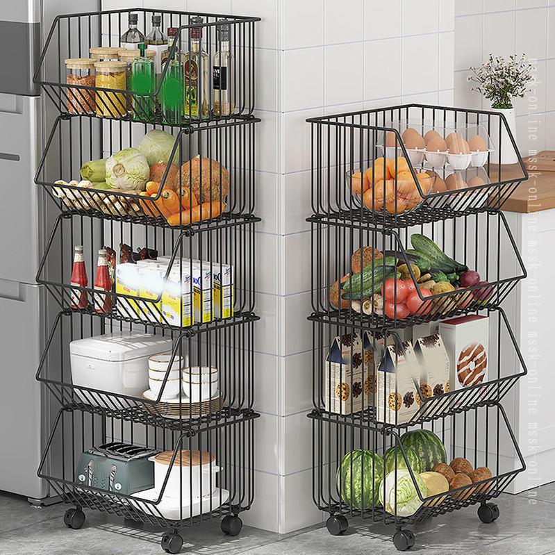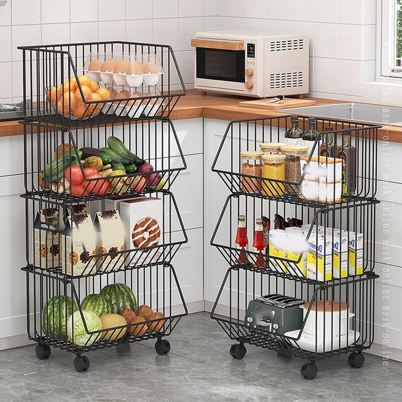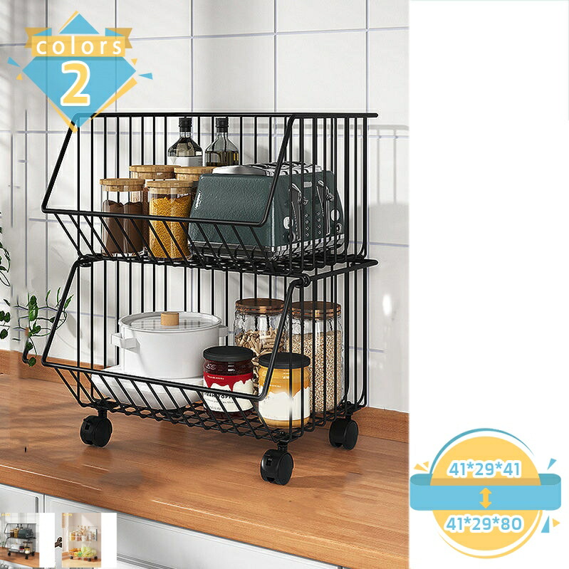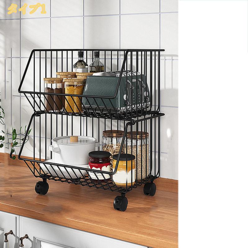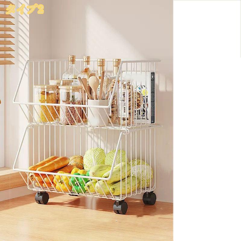 スタッキングバスケット キッチンワゴン 収納カート ワイヤーバスケット 果物と野菜の保管 多機能収納バスケット バスケットワゴン キャスター付き 多機能ランドリー収納 調味料 野菜 服 雑貨収納収 皿
