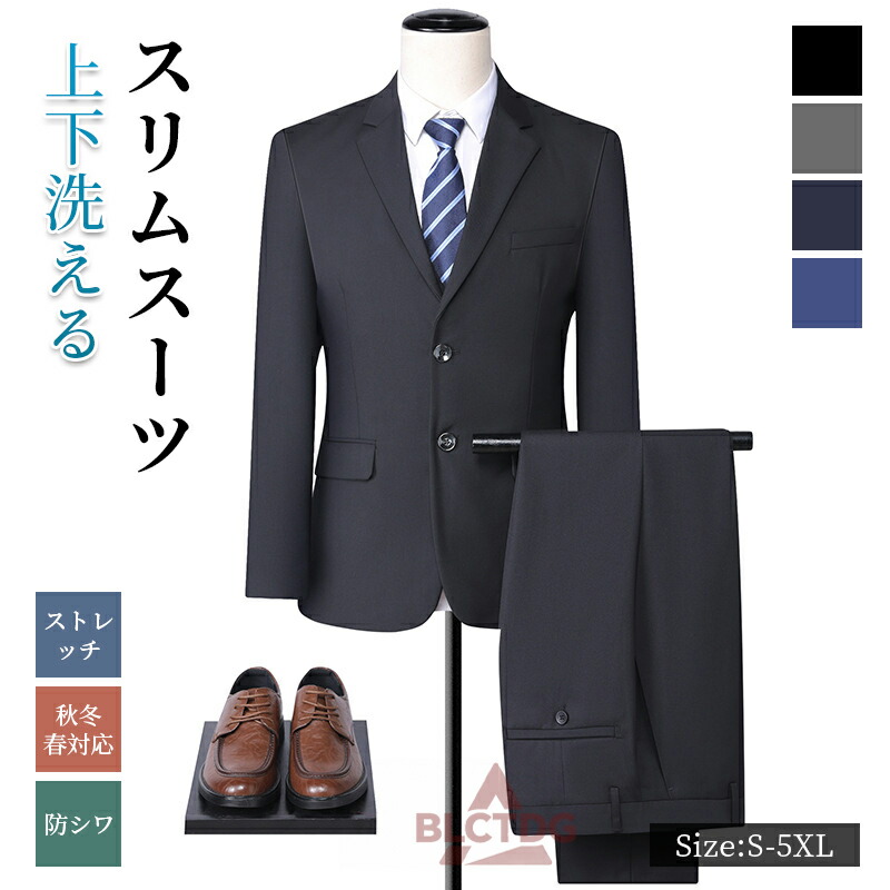 スーツ 洗える 秋冬 メンズ オールシ スーツ セットアップ スーツ 特集 ブラック グレー 紺色 ブルー S M L XL 2XL 3XL 4XL 5XL