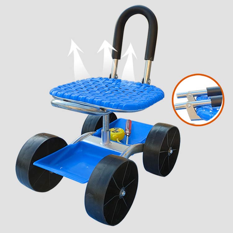 4輪 360°回転 椅子 ガーデンカート 車輪付き 腰掛け 背もたれ付き 園芸用カート 高さ調節 農作業 折りたたみ 座面 座れる 腰掛け台車 収納機能 横移動 台車 作業椅子 作業カート