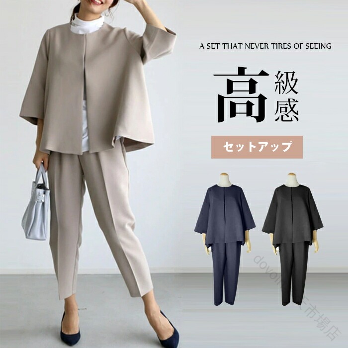 春の冠婚葬祭に輝く 大人のレディースフ スーツ セットアップ パンツスーツ 特集 ブラック ベージュ ネイビー S M L