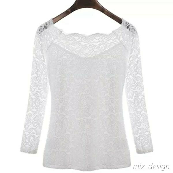 レディース トップス 長袖 レース総柄 レディースファッション 新登場! ホワイト ブラック S M L 2L(XL) 3L(2XL)