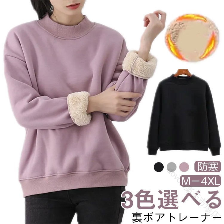 裏ボア スウェット トレーナー レディ レディースファッション 特集 パープル ブラック グレー M L XL 2XL 3XL 4XL