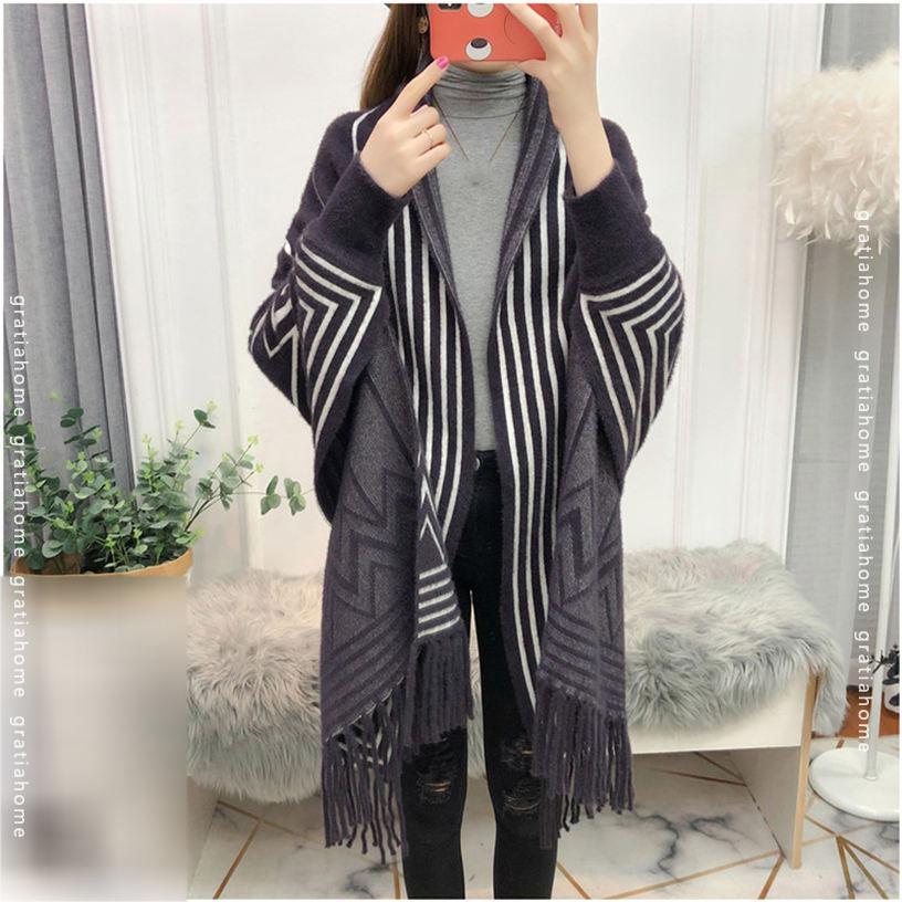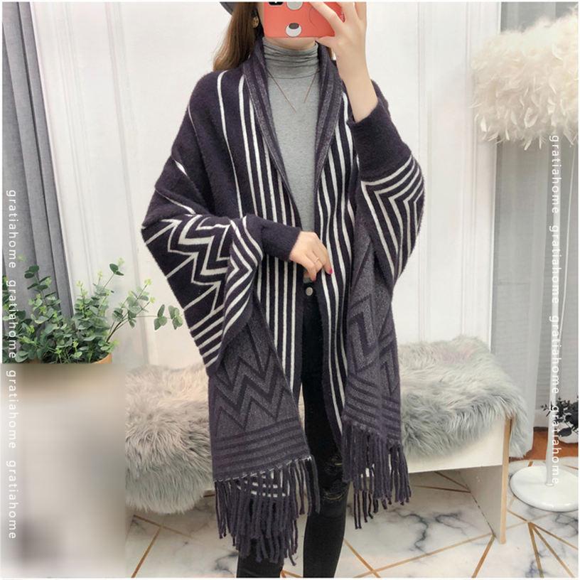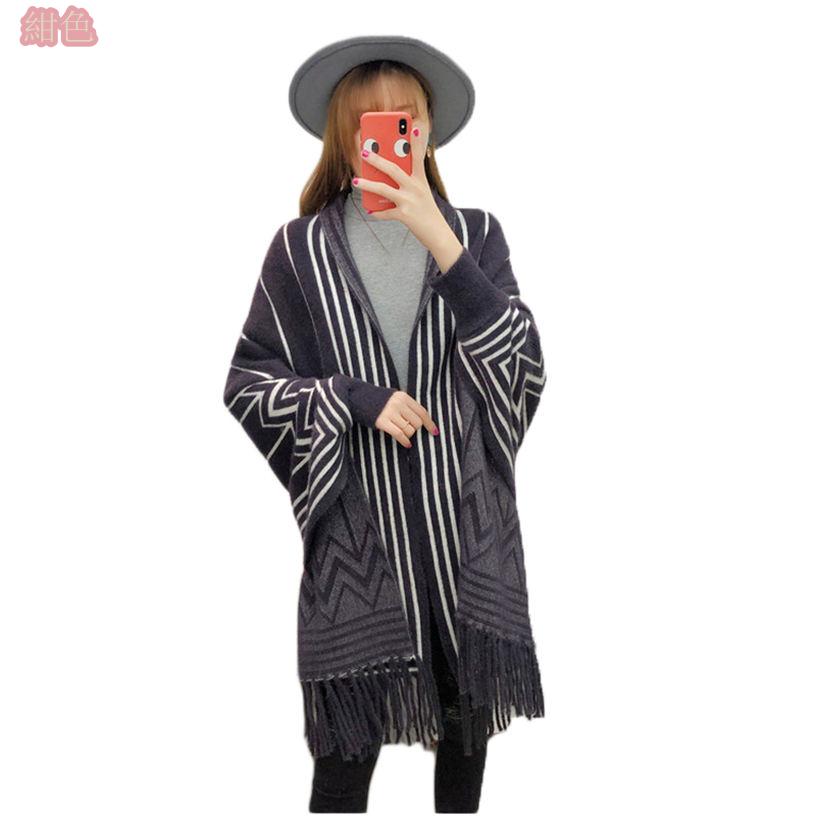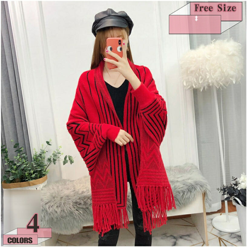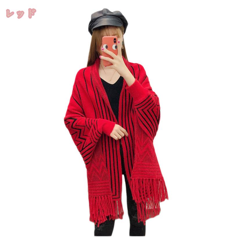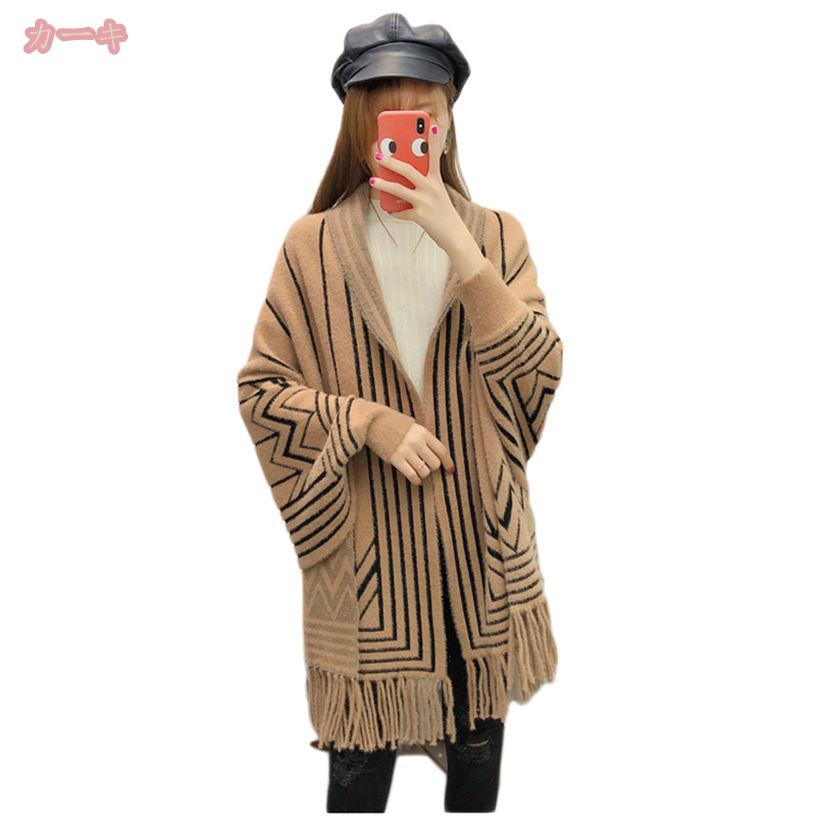 ショールコーディガン マフラー 大判ストール 暖かいポンチョ ドルマンスリーブ ロング丈 羽織 高見え アウター マント カーディガン 厚手 エレガント レディース おしゃれ 防寒 エレガ ストライプ