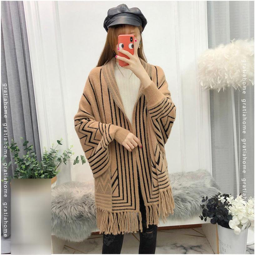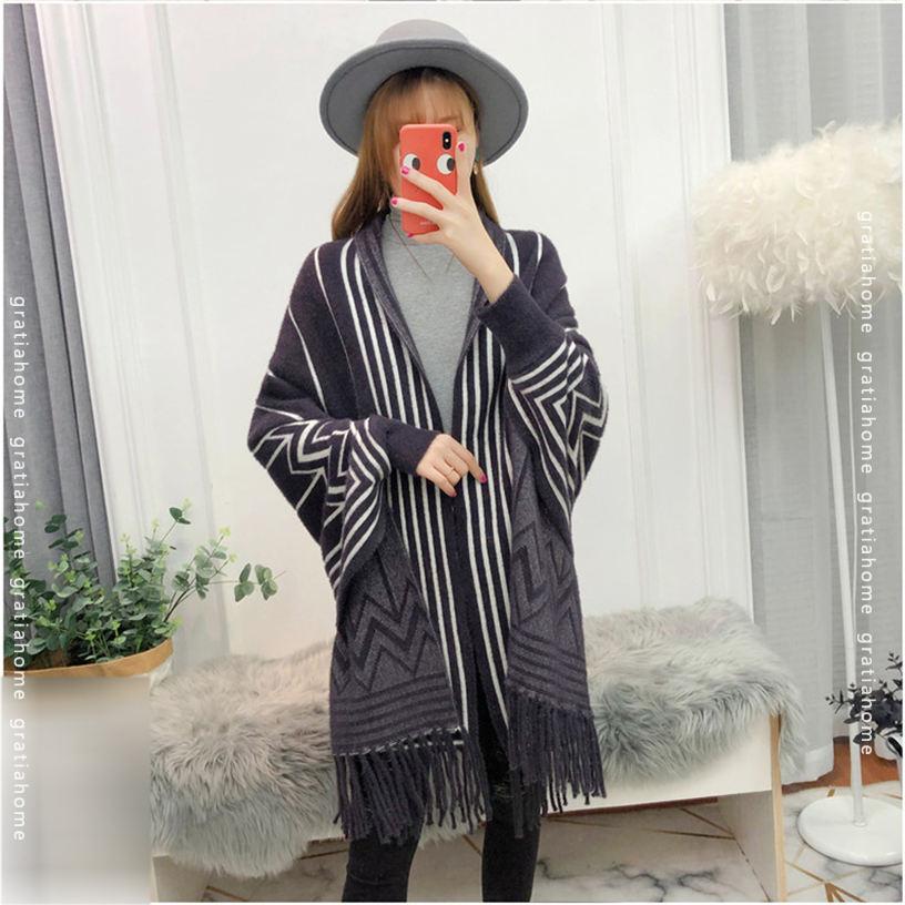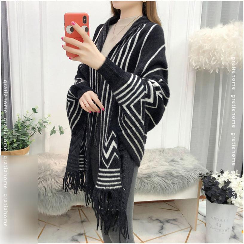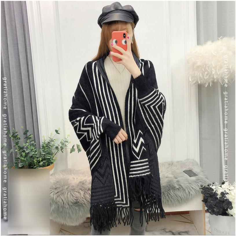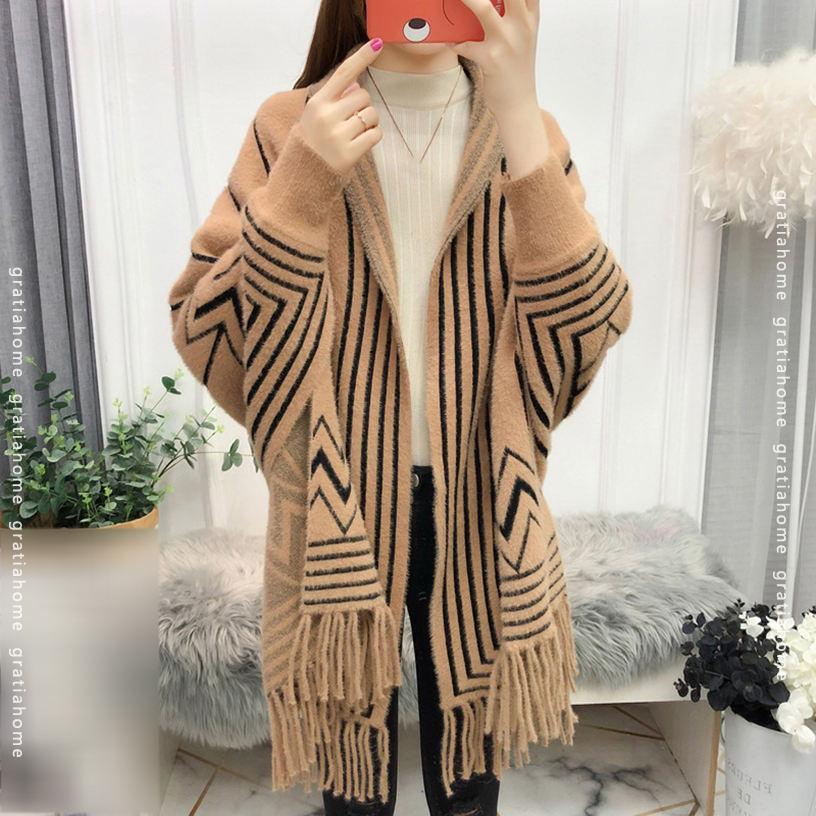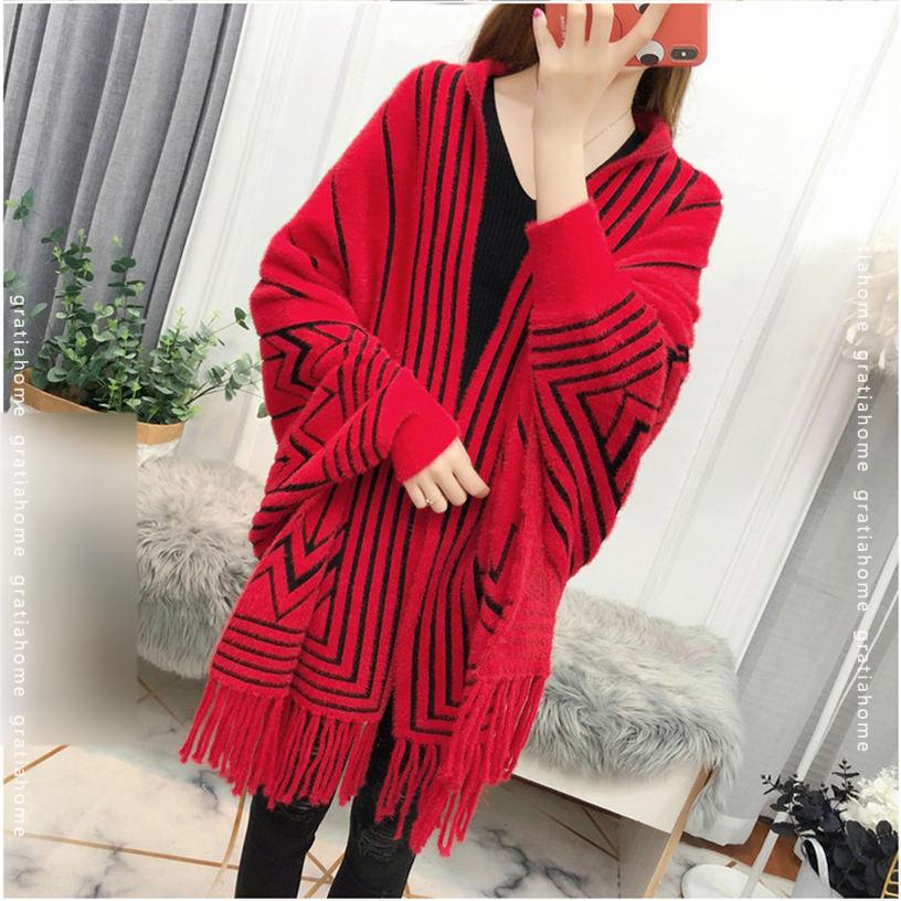 ショールコーディガン マフラー 大判ストール 暖かいポンチョ ドルマンスリーブ ロング丈 羽織 高見え アウター マント カーディガン 厚手 エレガント レディース おしゃれ 防寒 エレガ ストライプ