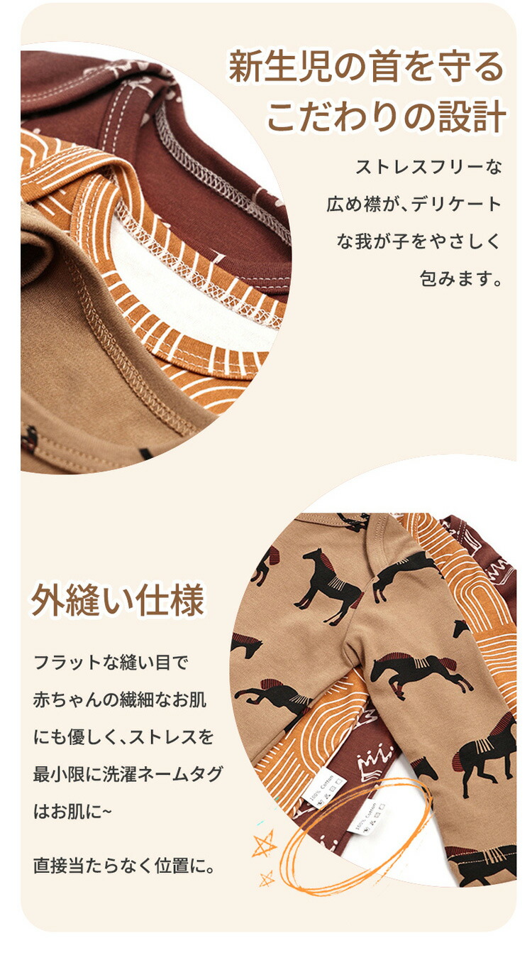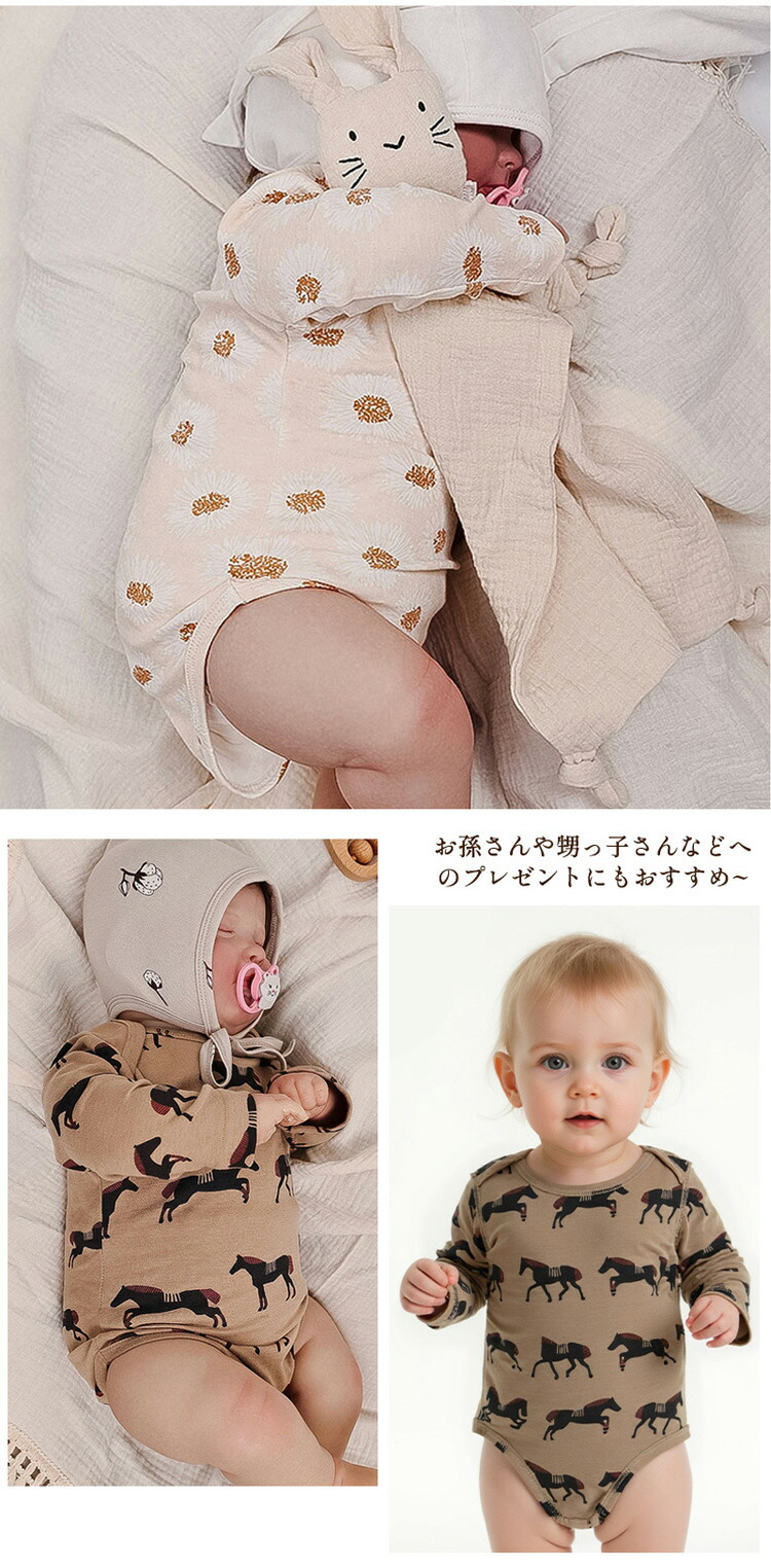 ベビー ロンパース ベビー服 長袖 新 キッズ ベビー マタニティ 人気 ブラウン馬 オレンジ迷宮 ワインレッドクラウン ベージュタンポポ ホワイト星 66cm 73cm 80cm 90cm