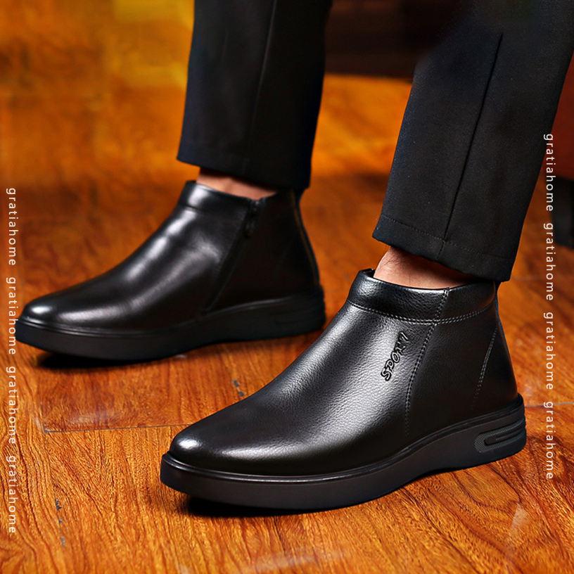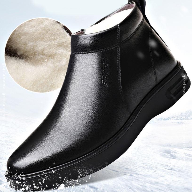 スノーブーツ ビジネスシューズ メンズ 冬用 ボア 裏起毛 防寒 暖かい ショートブーツ ワークブーツ ジッパー カジュアル 防滑 快適 柔らかい オフィス ウィンターブーツ 通勤 黒 茶 父の 仕事