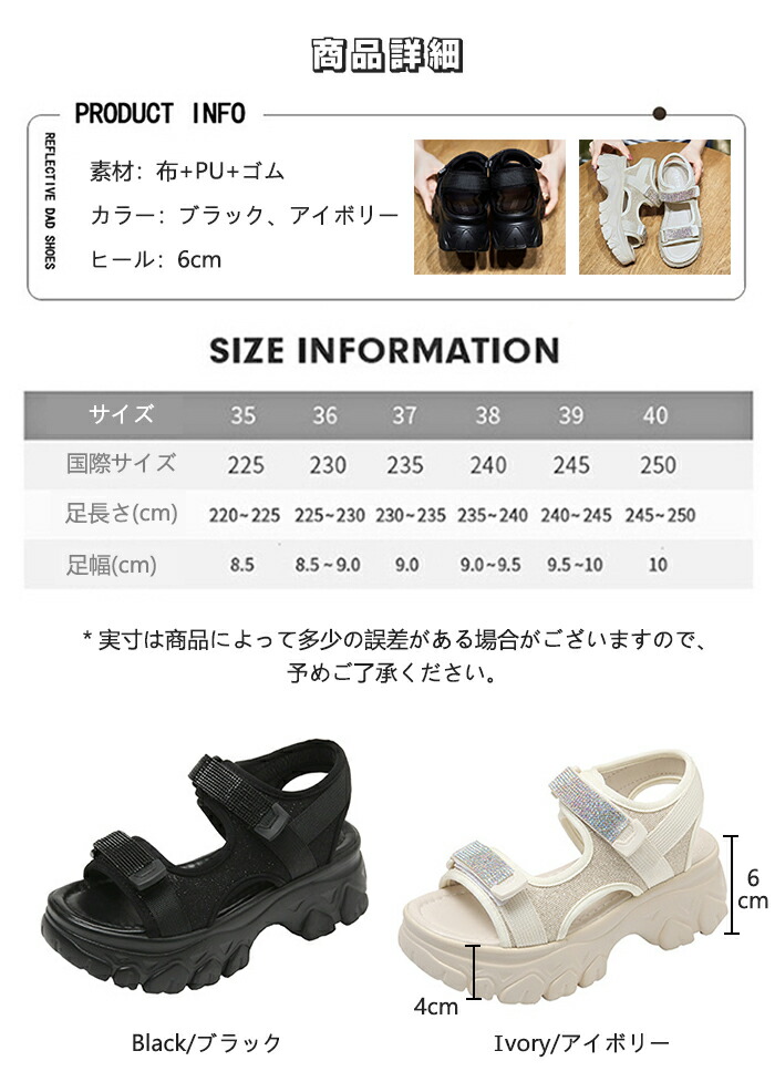 厚底サンダル スポーツサンダル レディ 靴 特集 ブラック アイボリー 33(内寸21.5cm) 34(内寸22.0cm) 35(内寸22.5cm) 36(内寸23cm) 37(内寸23.5cm) 38(内寸24cm) 39(内寸24.5cm) 40(内寸25cm)