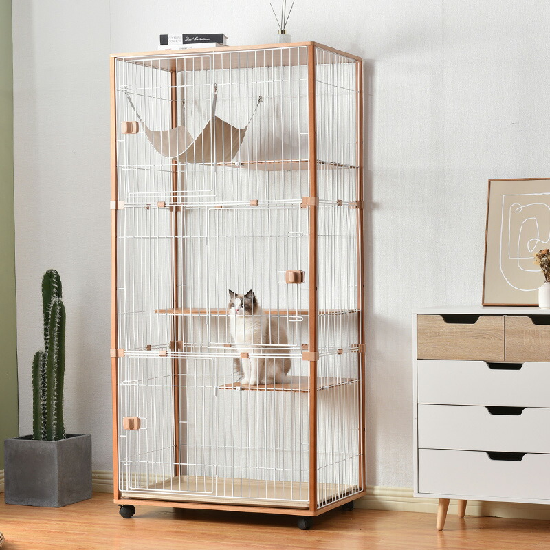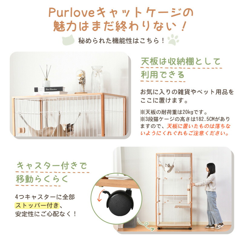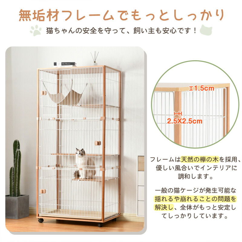 ケージ キャットケージ 3段 木製フレ ペット ペットグッズ 通販 ナチュラル チーク