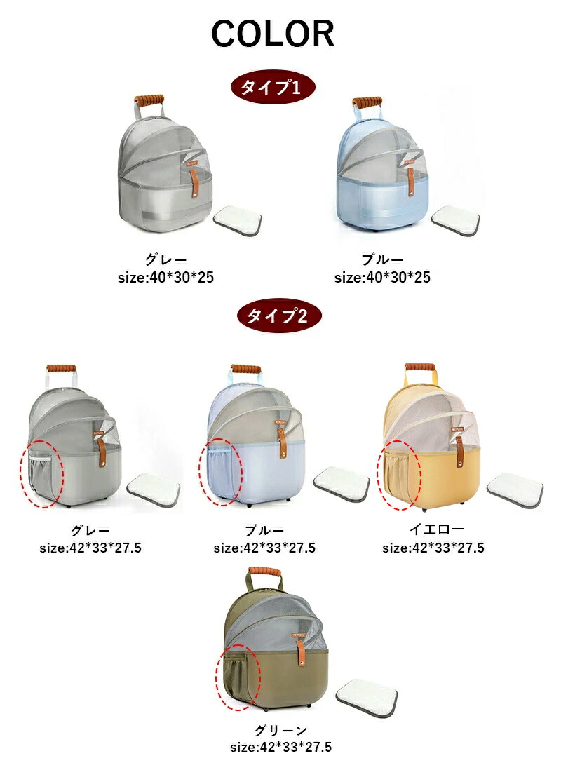 ペットキャリーバッグ ペットキャリーリ 猫用品 キャリーバッグ カート トートキャリー 新登場! タイプ1グレー タイプ1ブルー タイプ2グレー タイプ2ブルー タイプ2グリーン タイプ2イエロー