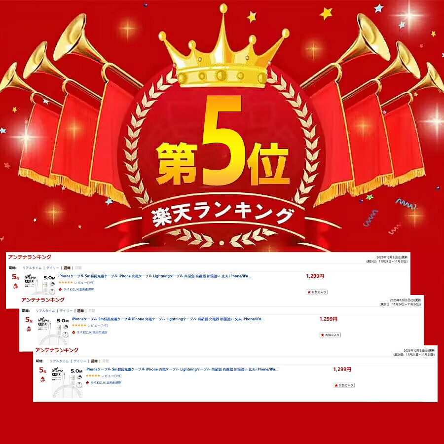 iPhoneケーブル 5m超長充電ケー スマートフォン タブレット 新作