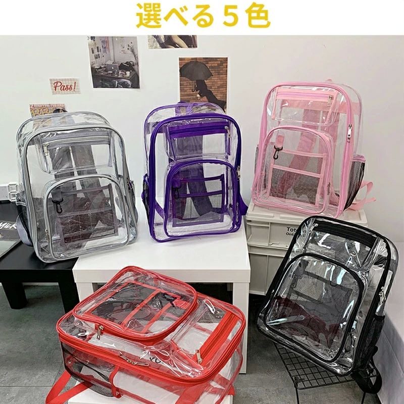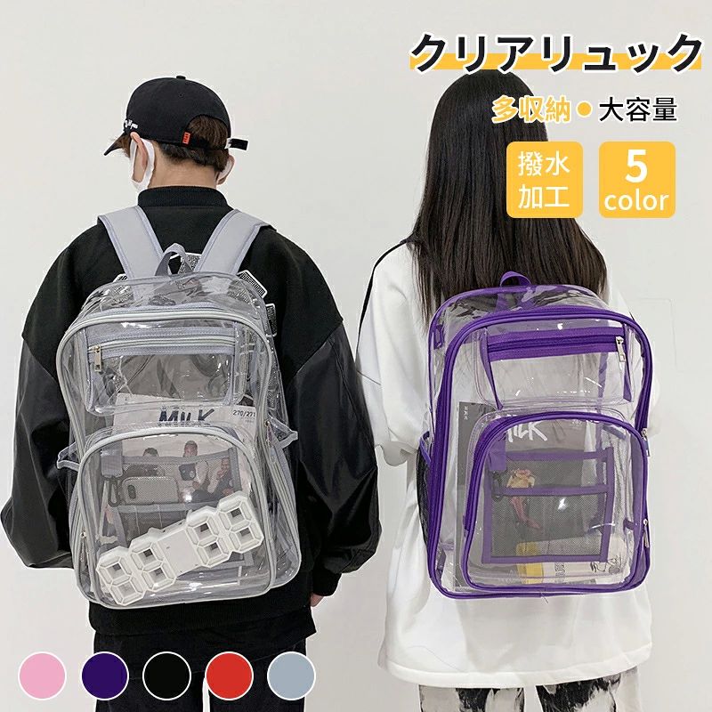 リュック クリア 蛍光 クリアバッグ バッグ 小物 ブランド雑貨 続々登場 ブラック レッド パープル ピンク グレー