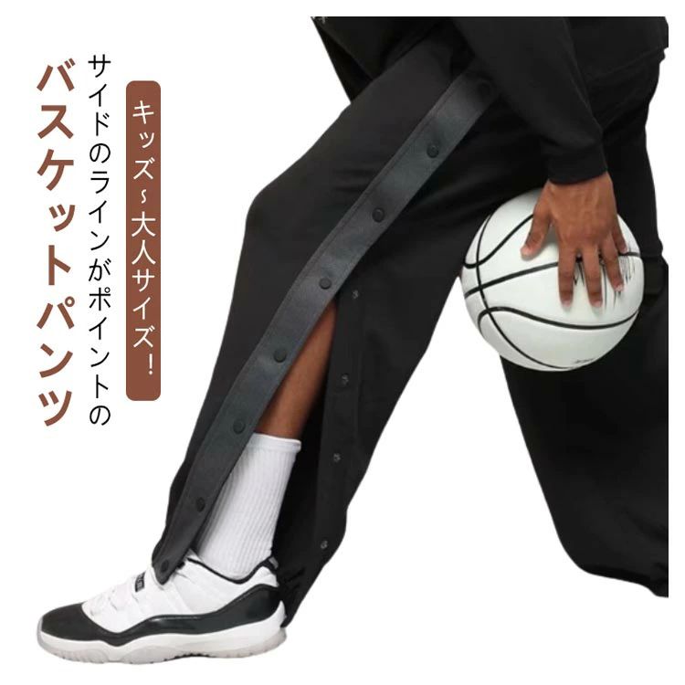 バスケットパンツ ジュニア 大人 スナップボタン キッズ サイドボタン 長ズボン ロングパンツ ジャージ 男の子 メンズ バスパン バスケパンツ トレーニングウエア 大きいサイズ バス スポーツウェア