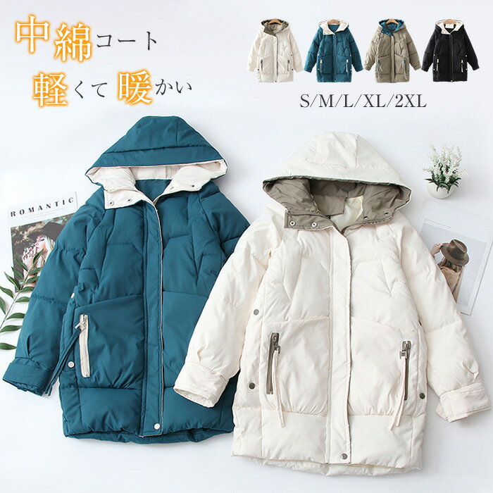 レディース アウター コート ジャケット カジュアル 体型カバー 中綿 防寒 ハイネック フード ゆったり 秋冬 春