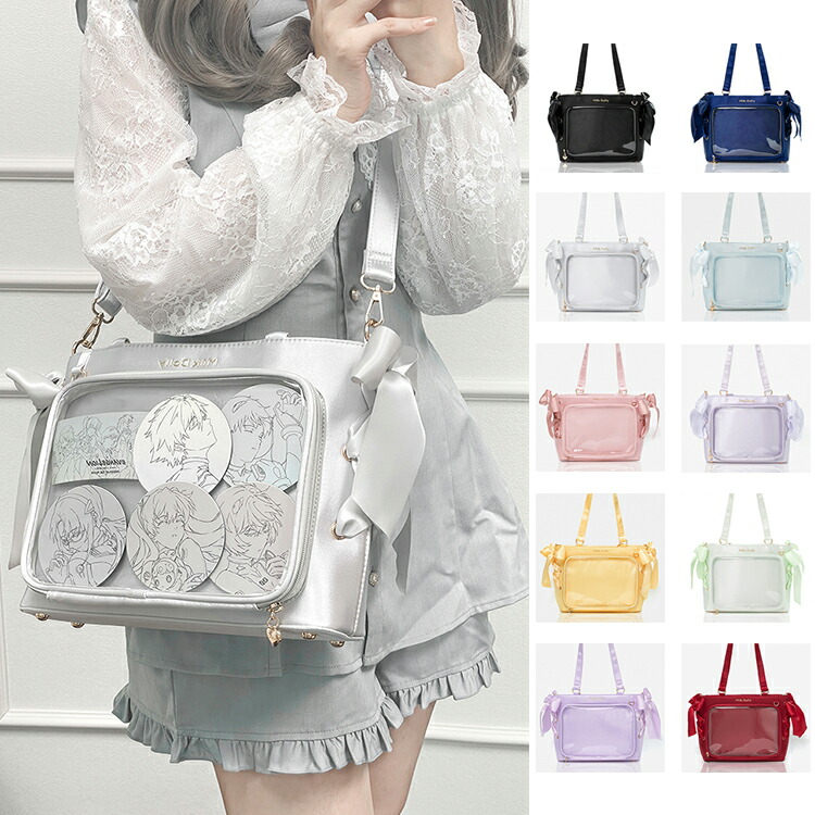 Show Case 痛バッグ リボン痛バ 無地サテン痛バシンプル 光沢痛ショルダーバッグ 推し活グッズ トートバッグ 透明 見せバッグ おたくバック かばん ナイロン 娘へプレゼント 贈り物 缶バッジ