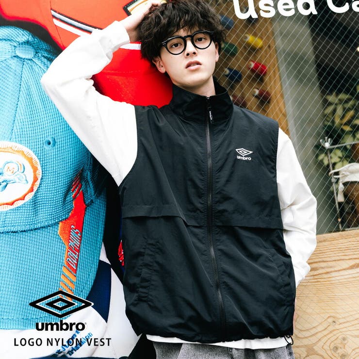 Rocky Monroe UMBRO ナイロンベスト 裏メッシュ アンブロ 前開き メンズ レディース ライトアウター ノースリーブ スタンドネック ハイネック リラックス 羽織り 無 ドロスト