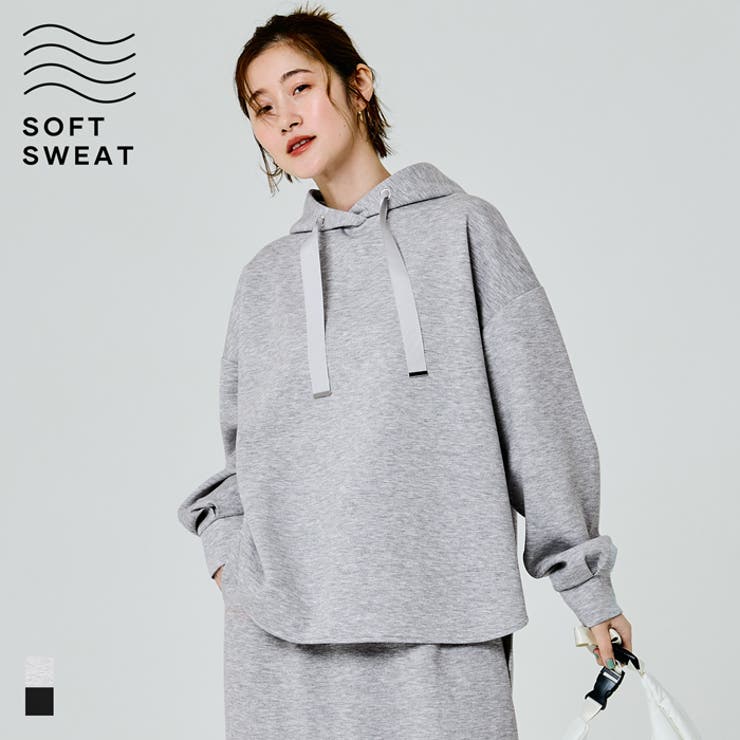 coca ラフさと上品さを両立 大人が着たいソフトスウェットリボンパーカー トップススウェット トレーナー