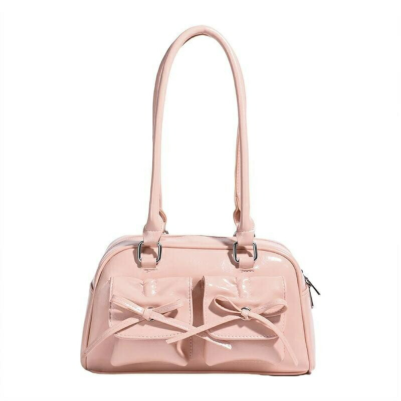 ショルダーバッグ 横長 バッグ リボン レディース ボストンバッグ ミニボストン 小さめ トートバッグ 横長バッグ 肩掛け リボンバッグ バレエコア トレンド おしゃれ シルバー ブラック レ 可愛い