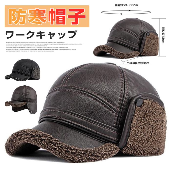 防寒帽子 耳あて付 ワークキャップ メンズ PU帽 裏起毛 キャップ ゴルフ 秋冬 あったか 防寒 シンプル カジュアル 無地 おしゃれ